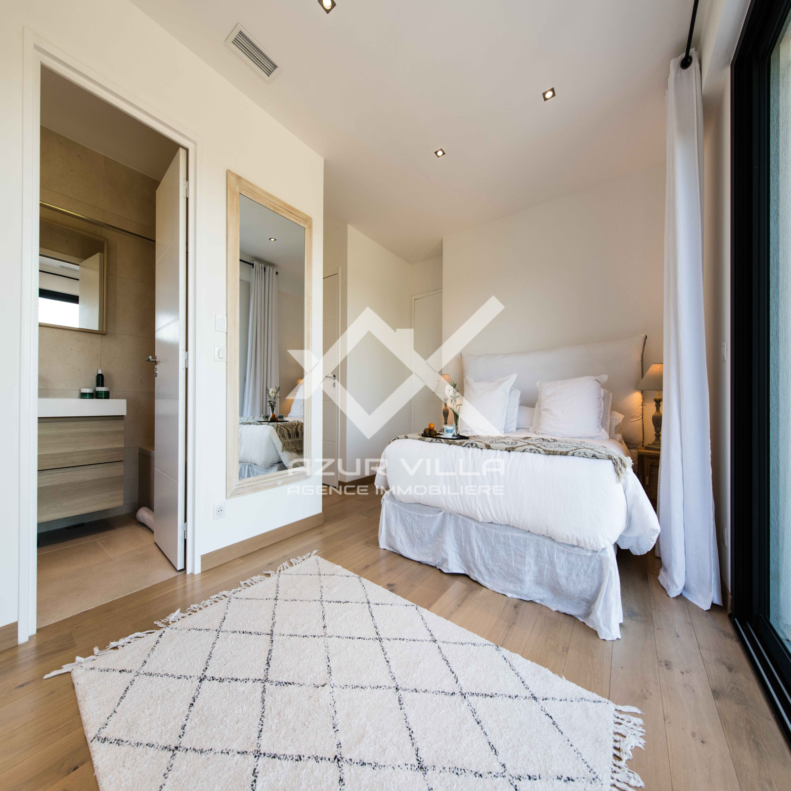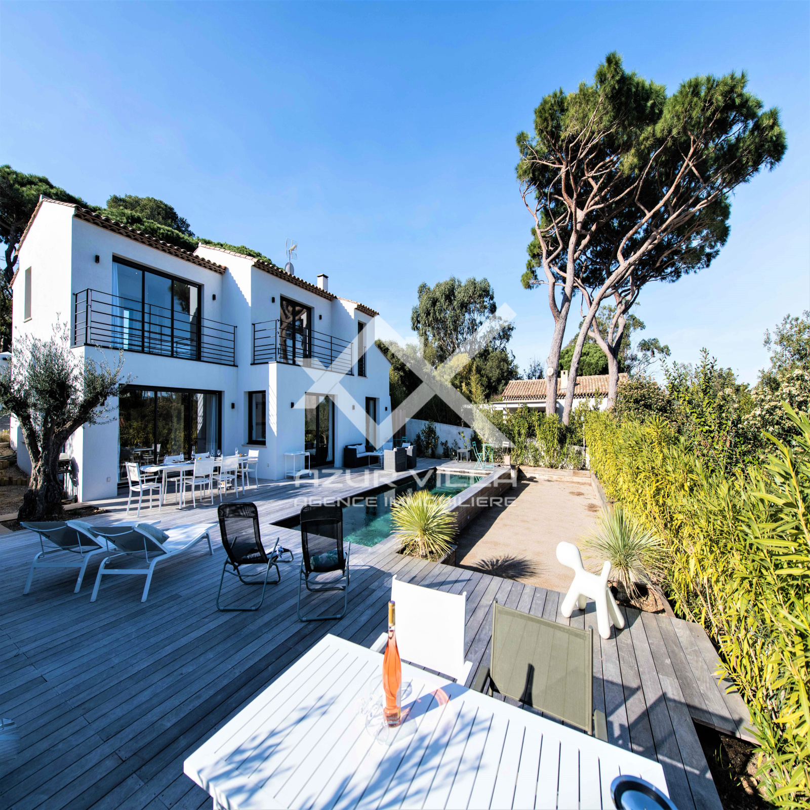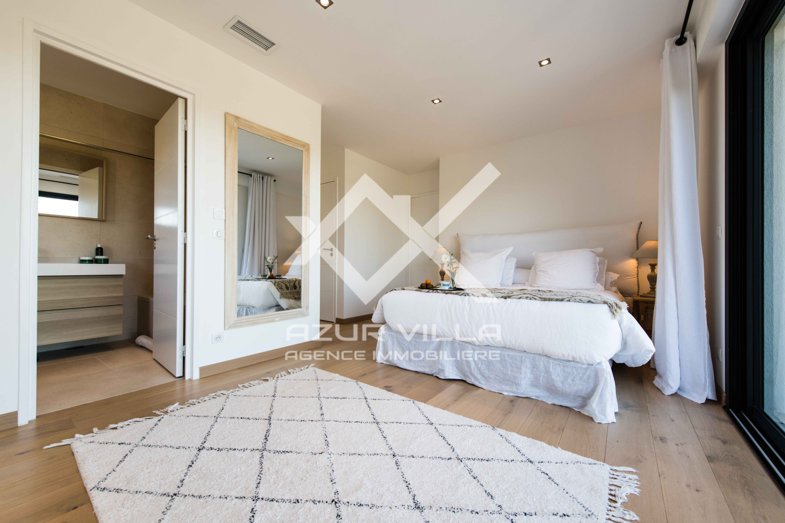 Superbe villa contemporaine neuve, surplombant les pins environnants et la mer.