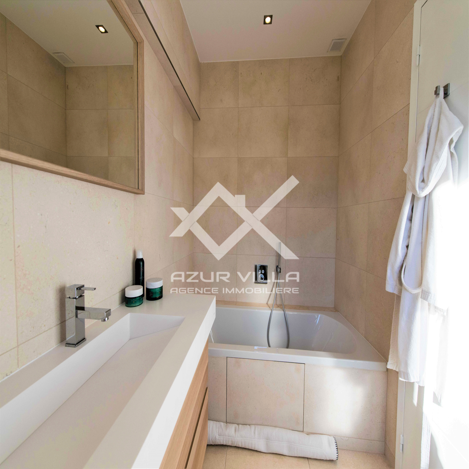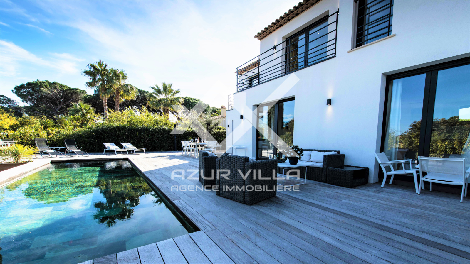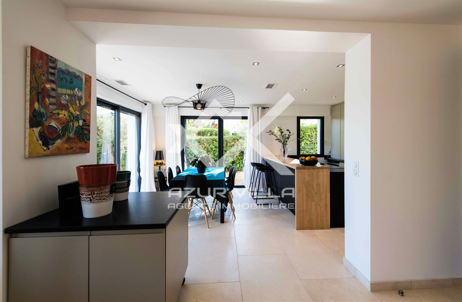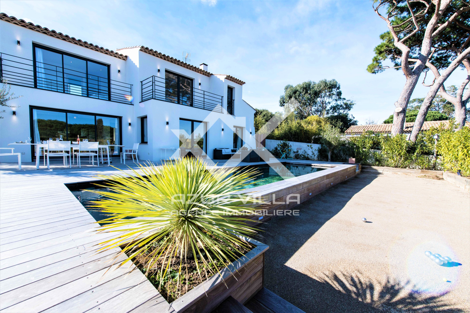 Superbe villa contemporaine neuve, surplombant les pins environnants et la mer.