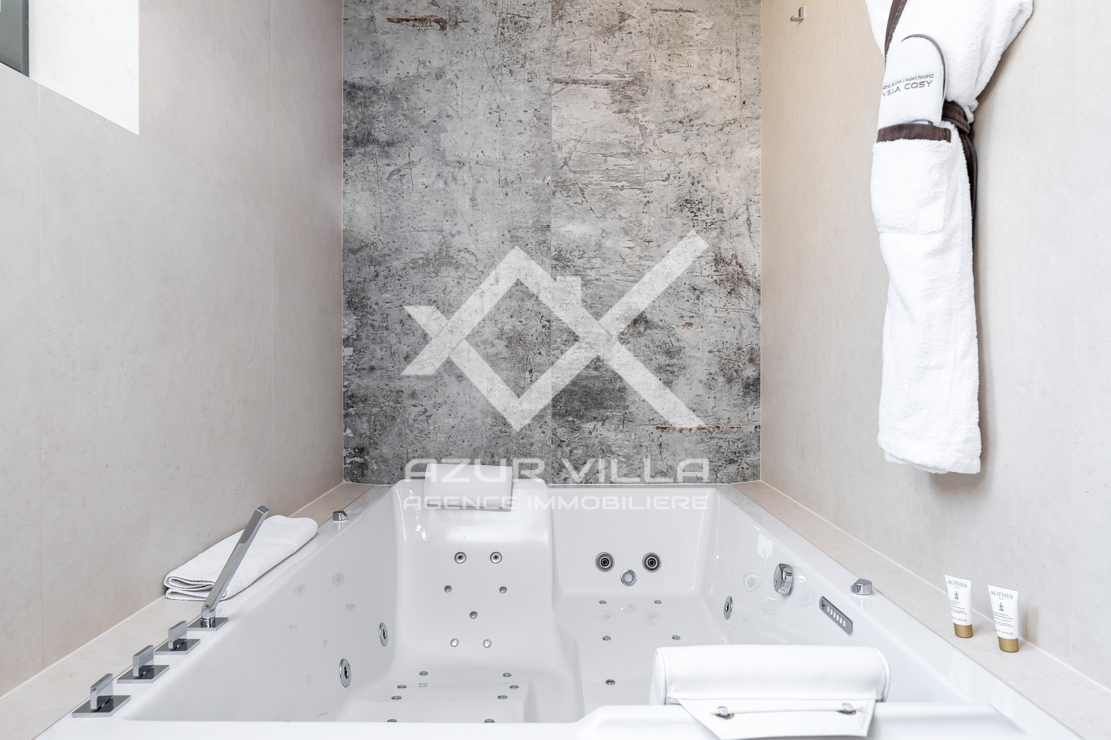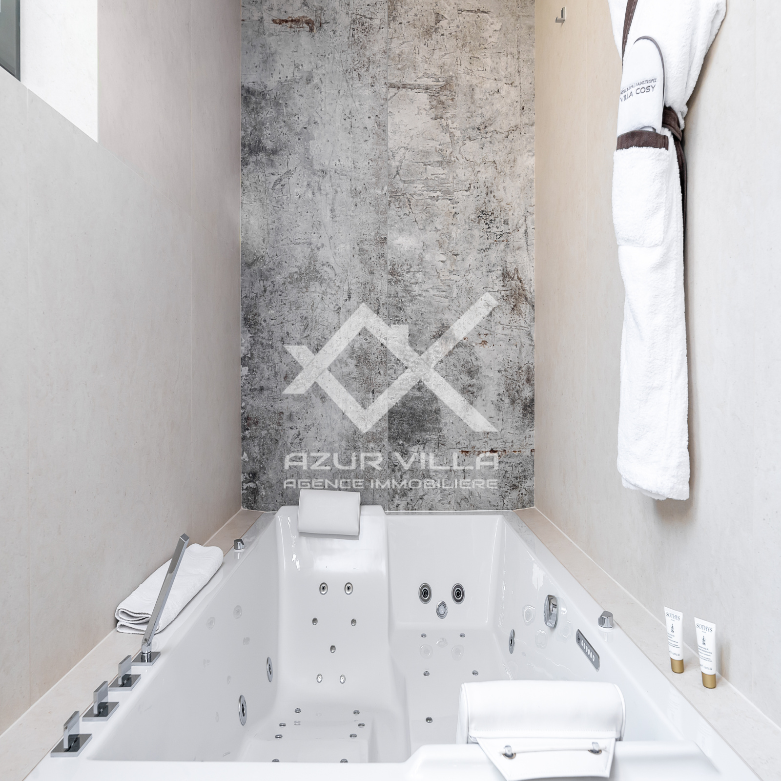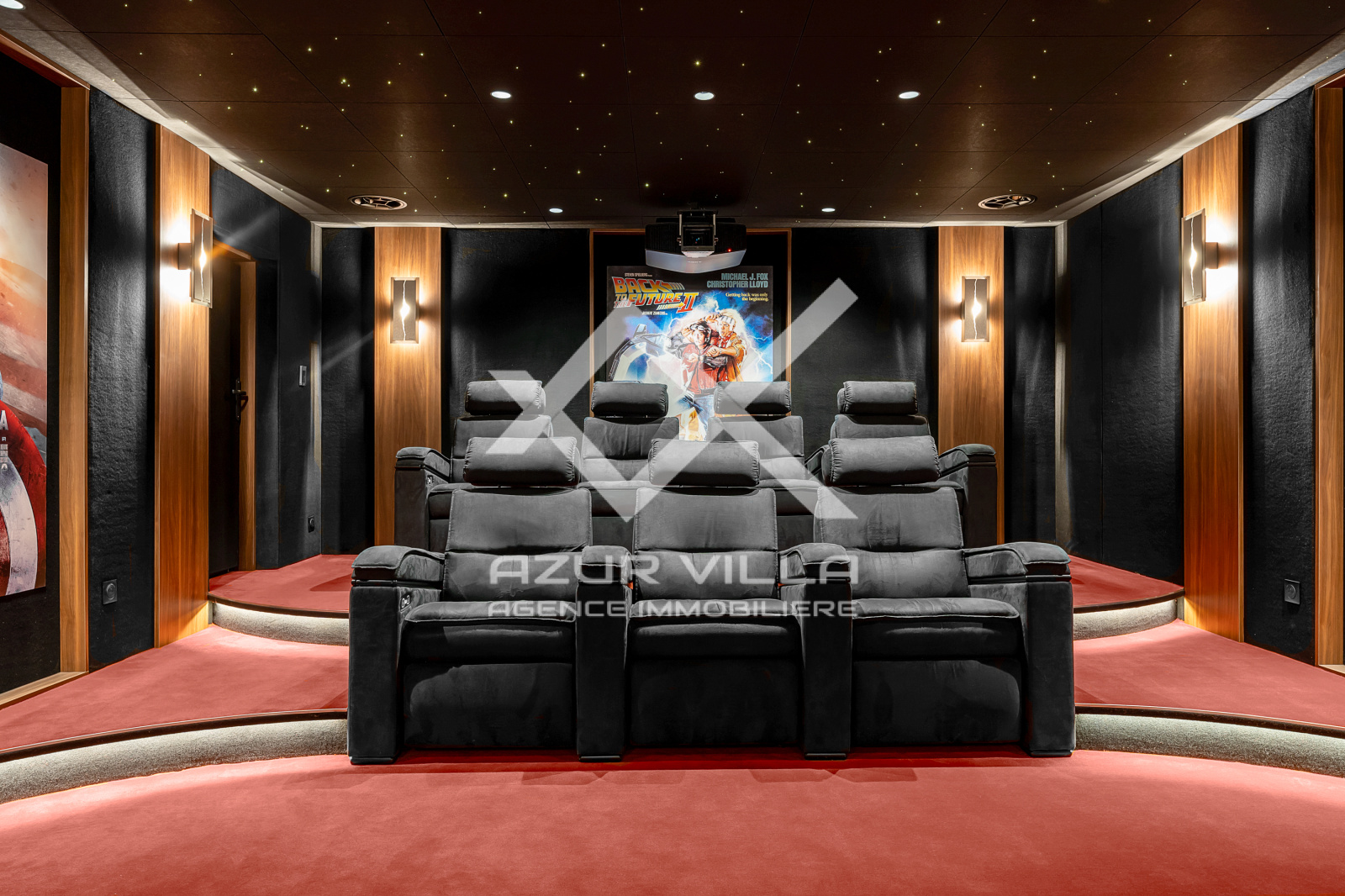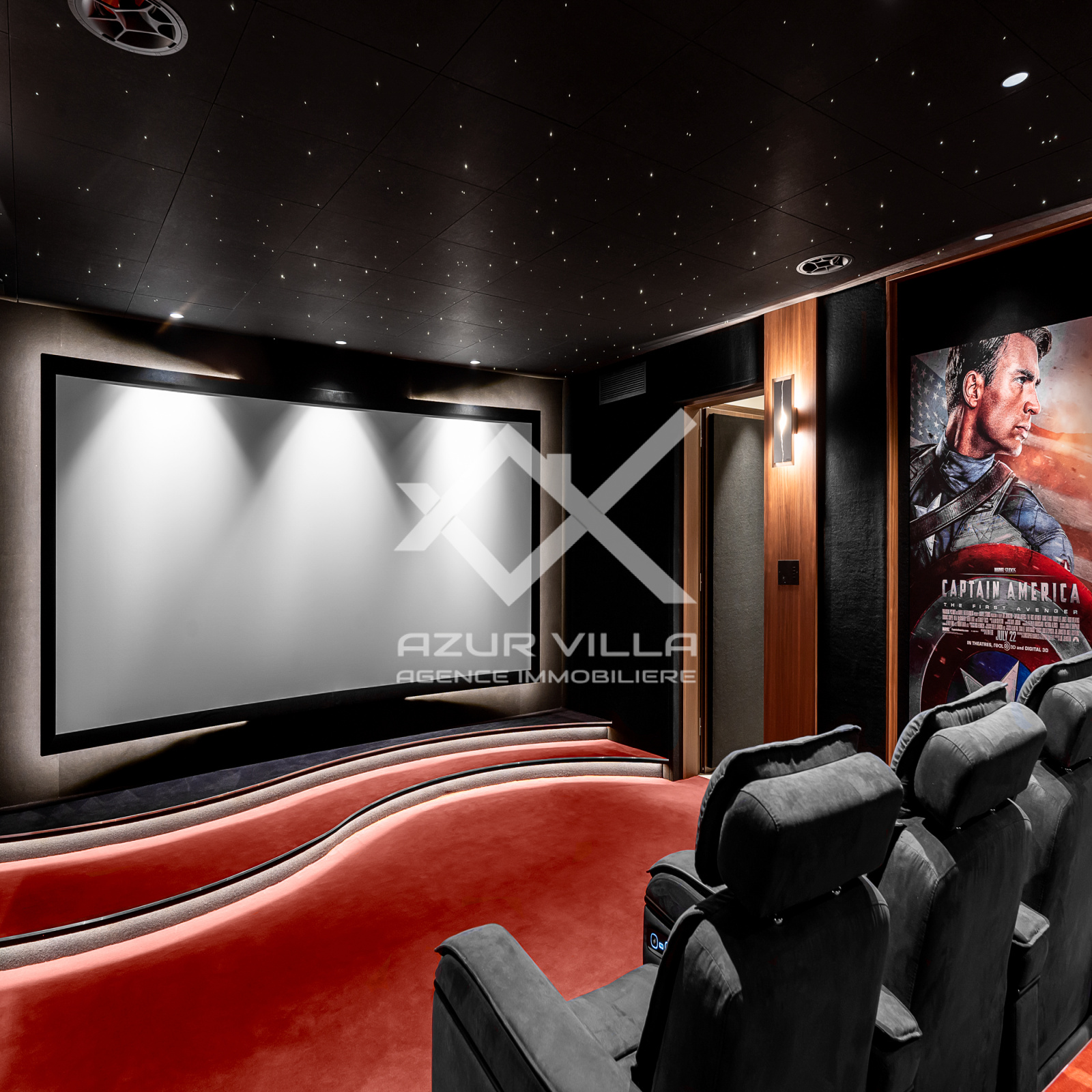 - Equipements: 7 chambres, 2 salles de bain (dont 1 baignoire balnéo pour 2 personnes et 1 baignoire), 5 salle de douche, 8 WCs, Piscine chauffée avec nage à contre-courant, Salle de fitness Technogym, Sauna Traditionnel, Baby foot, Salle de cinéma, Cuisine La Cornue, Cave à vins, chauffage au sol, climatisation réversible dans chaque pièce,... Prestations très haut de gamme.