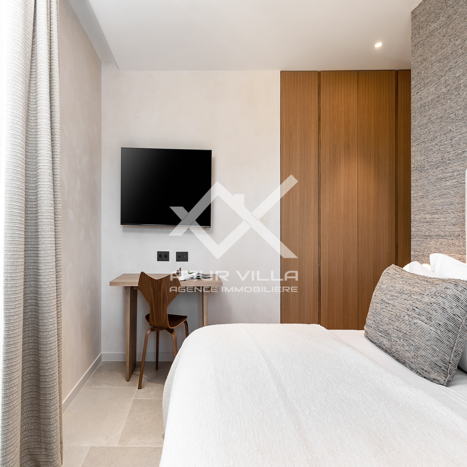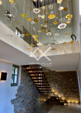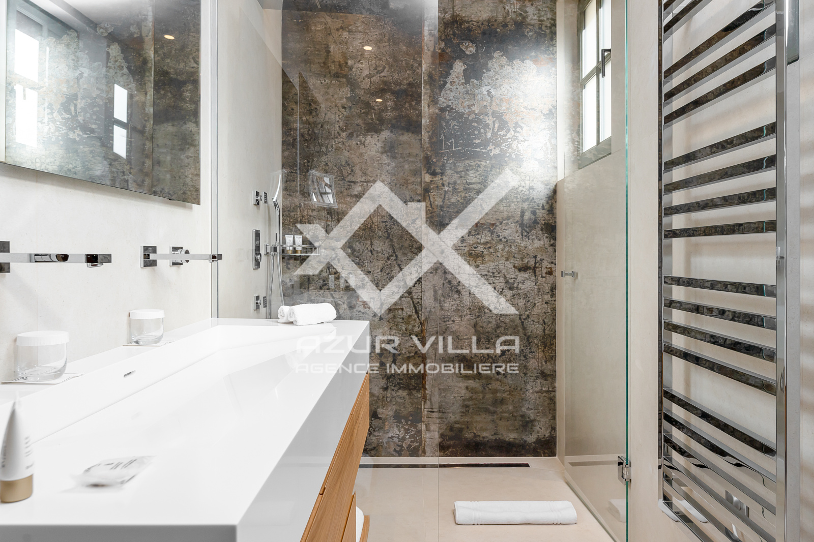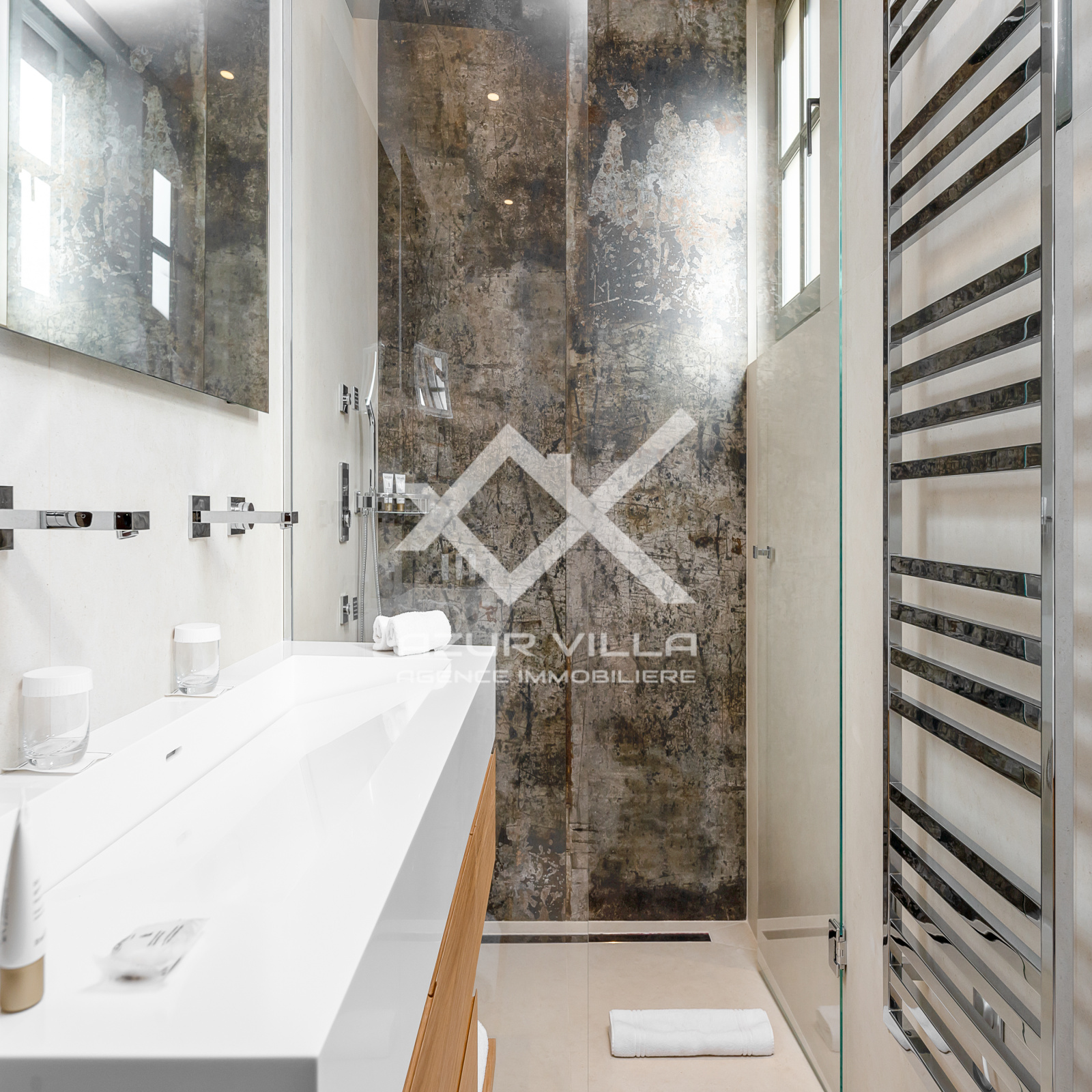 - Equipements: 7 chambres, 2 salles de bain (dont 1 baignoire balnéo pour 2 personnes et 1 baignoire), 5 salle de douche, 8 WCs, Piscine chauffée avec nage à contre-courant, Salle de fitness Technogym, Sauna Traditionnel, Baby foot, Salle de cinéma, Cuisine La Cornue, Cave à vins, chauffage au sol, climatisation réversible dans chaque pièce,... Prestations très haut de gamme.