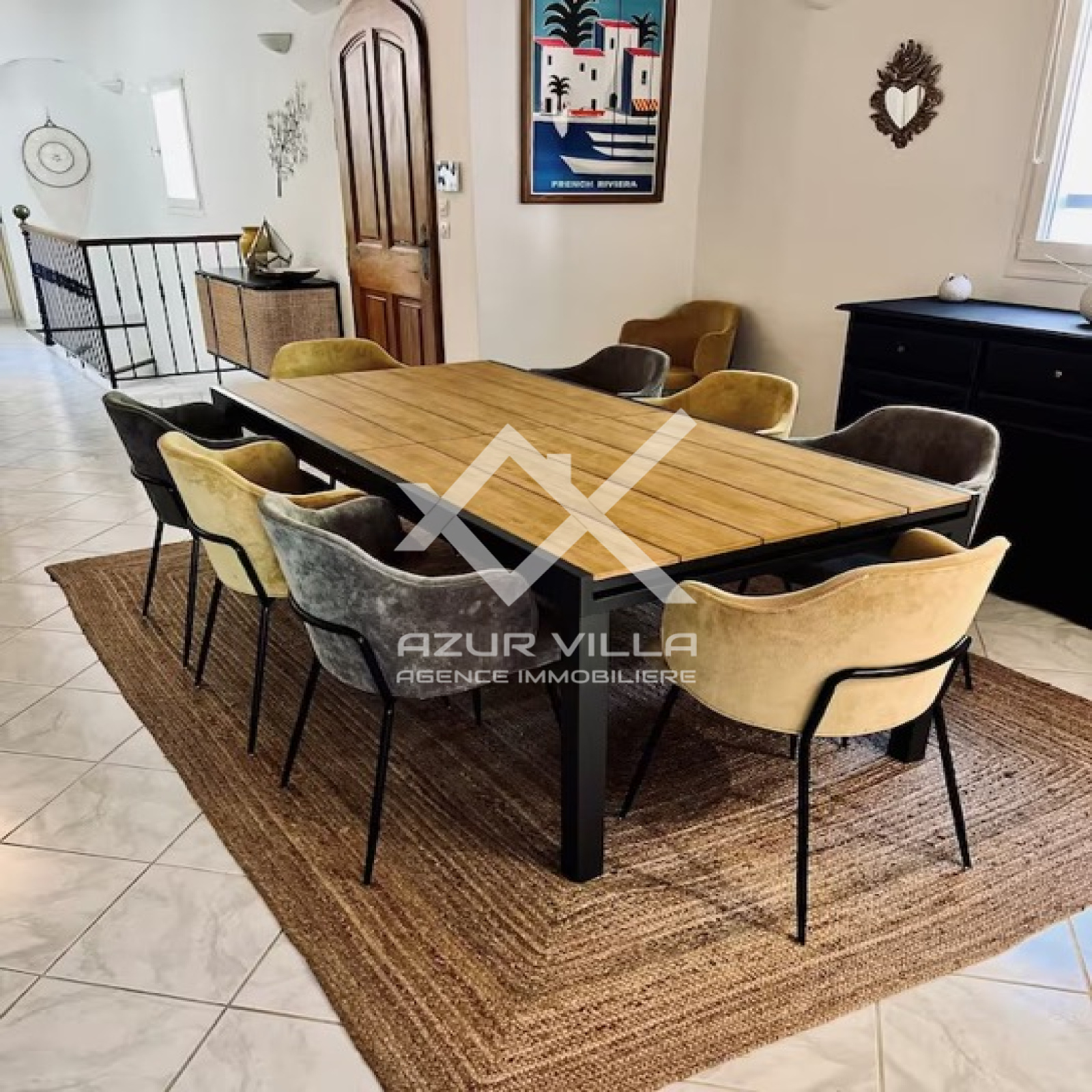 Au 1 étage une grande terrasse avec vue sur mer et une grande table pour les soirées d'été.
