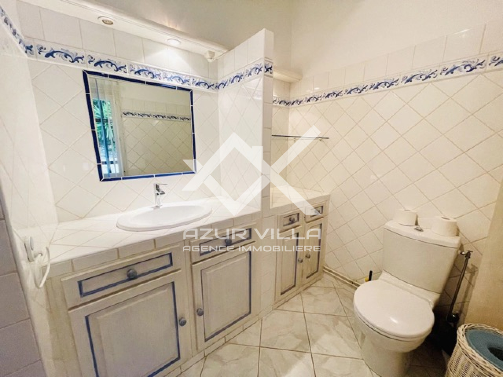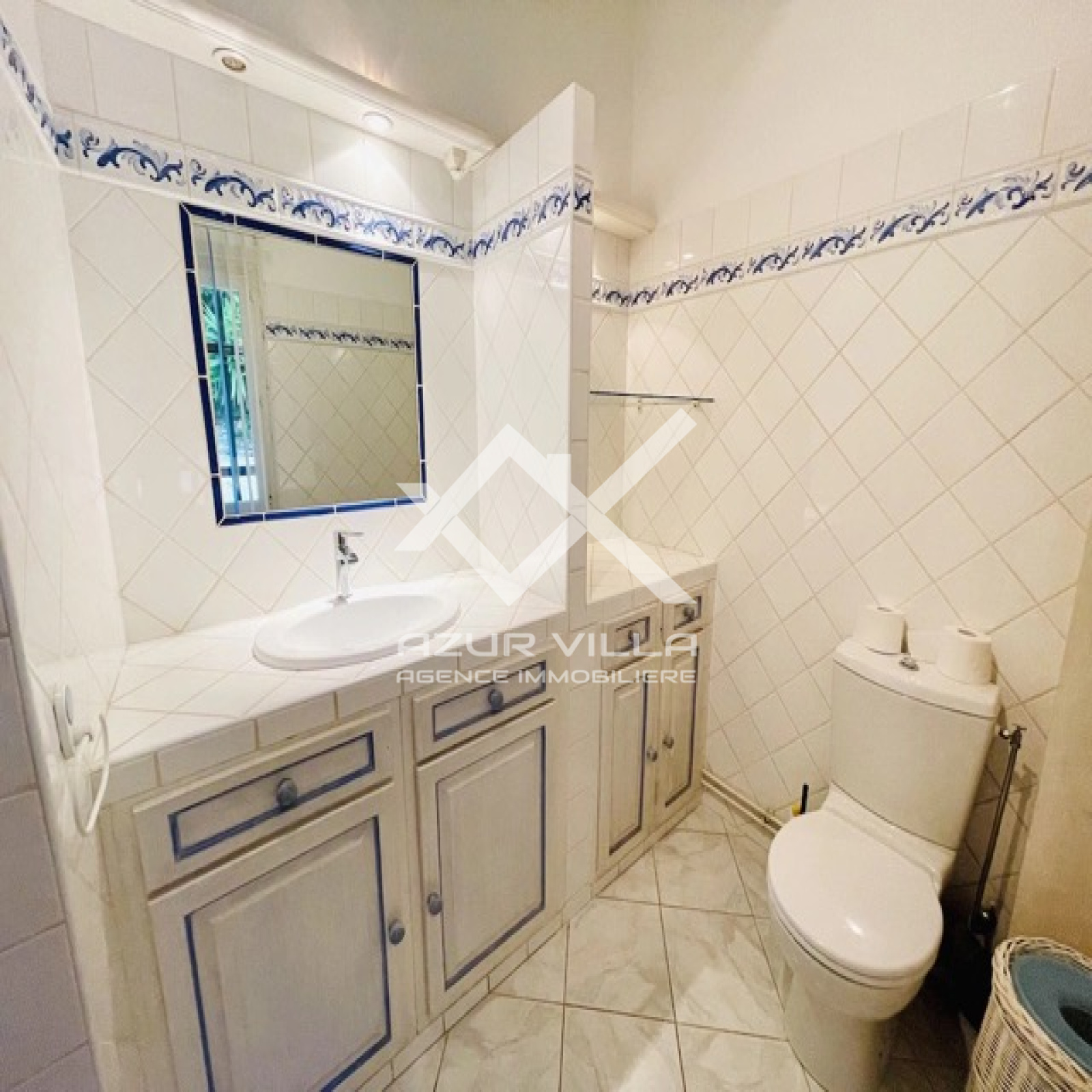 Le rch dispose de 2 salles de bain dont une avec baignoire et d'un WC indépendant, d'une cuisine et d'un salon avec télé.