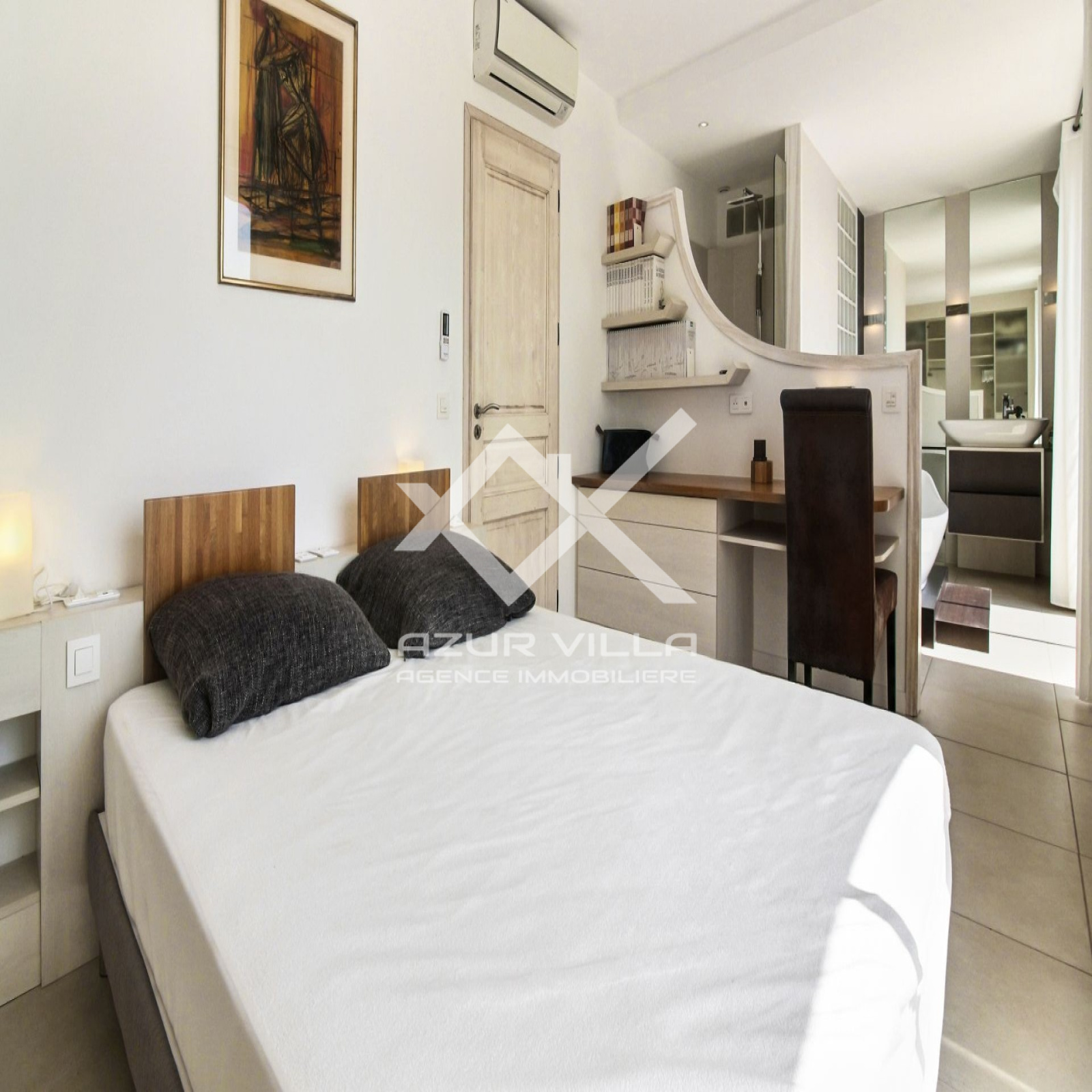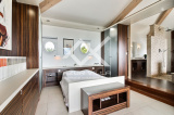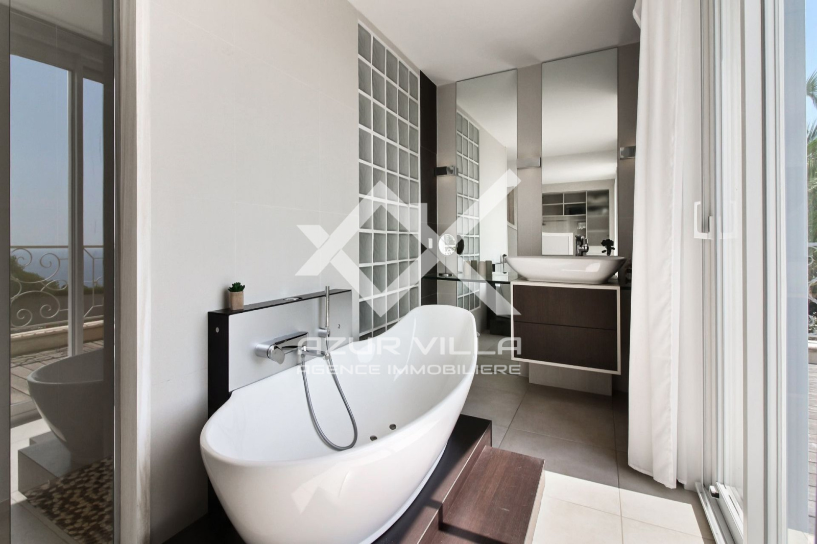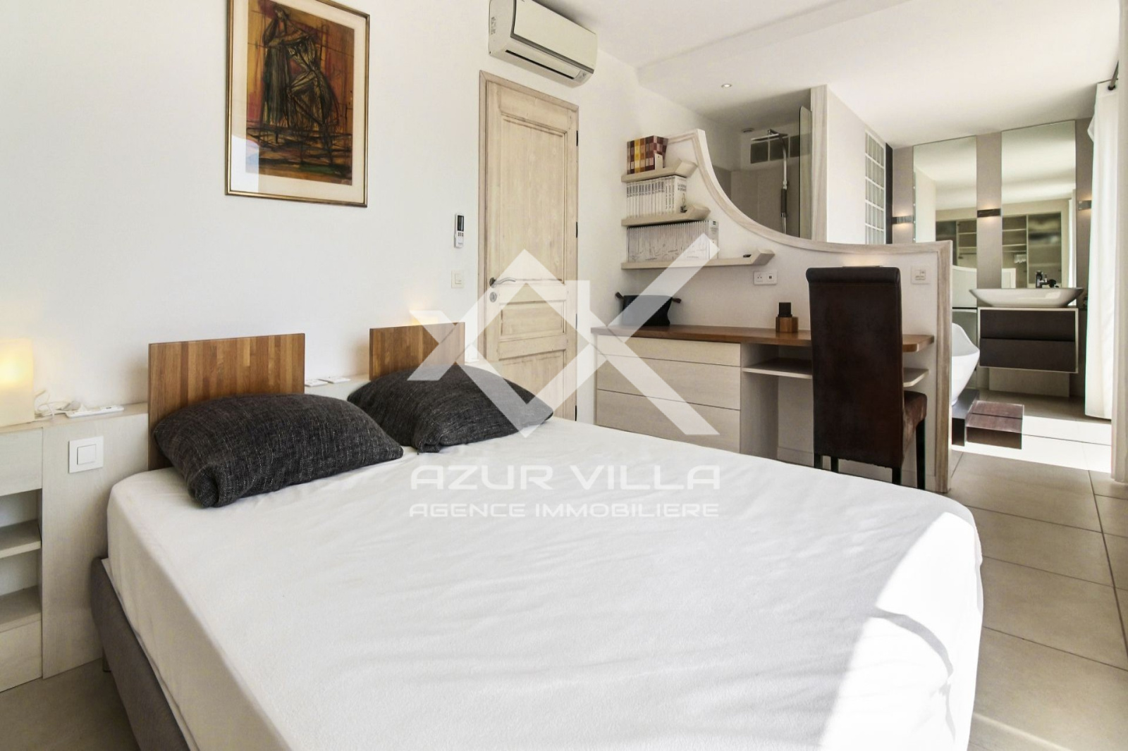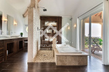 A l'étage, un espace lecture et une suite parentale de 80m². Une chambre avec 1 lit de 160 - Dressing - Salle de bains et grande terrasse de 80 m² surplombant la piscine offrant une superbe vue à 180° sur la mer.