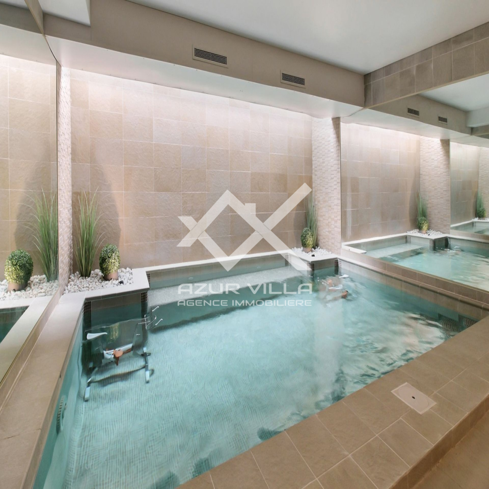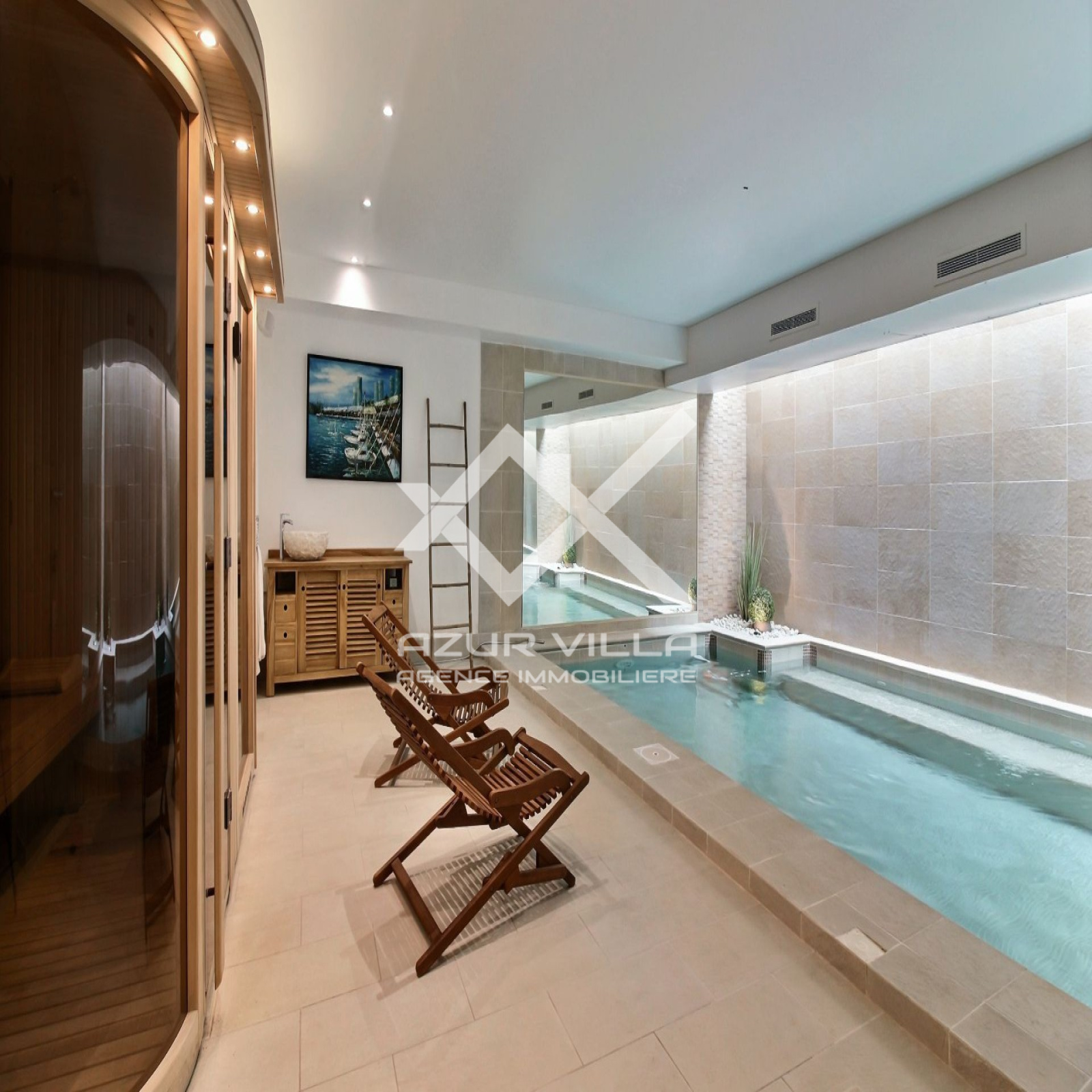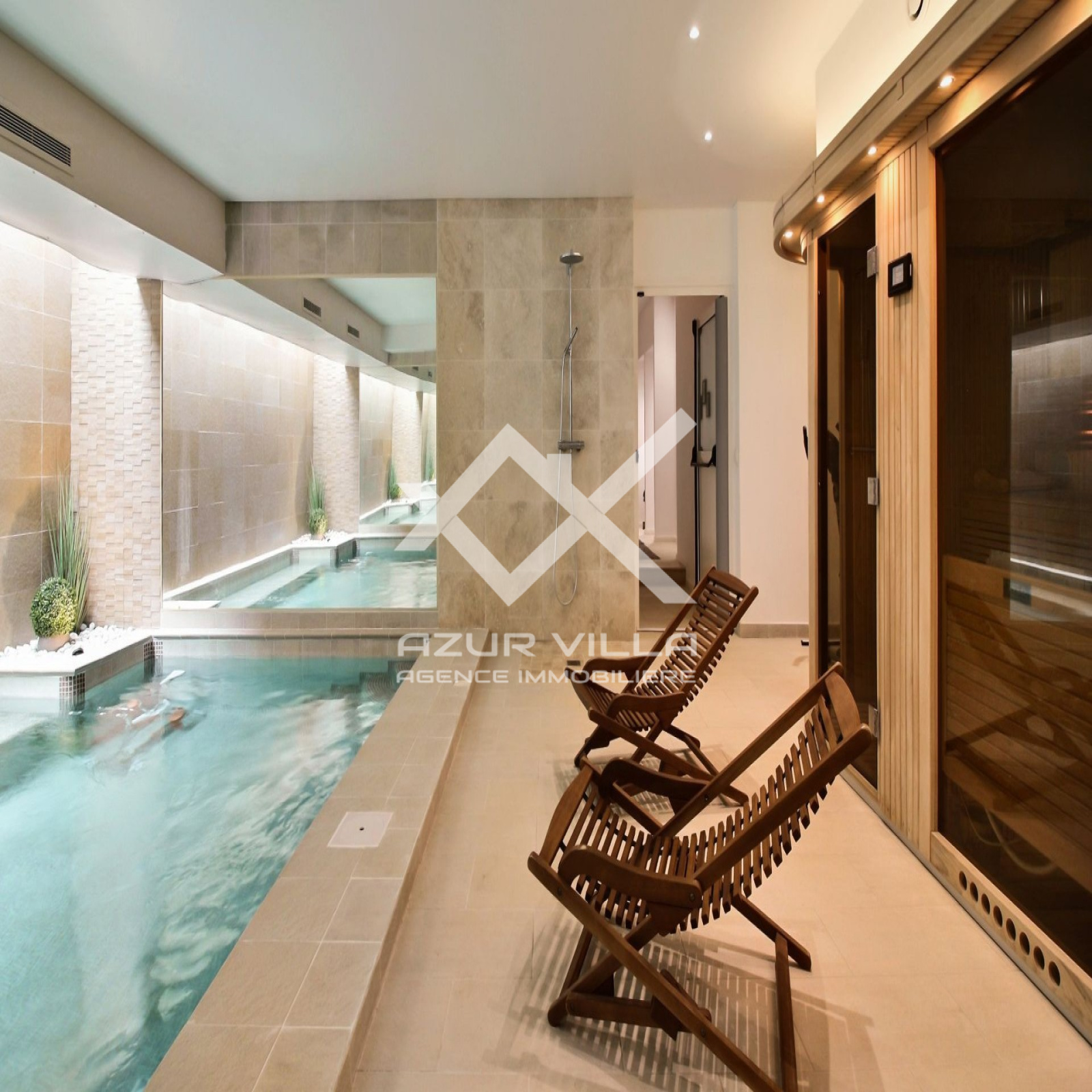 Une piscine intérieure 7x3 chauffée avec nage a contre courant et son Sauna
