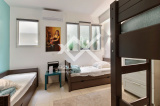 A ce même étage,un espace indépendant style ''studio'', de 50 m² avec une chambre et son lit de 160, salle de douches - Wc et plaques chauffantes pour le petit déjeuner