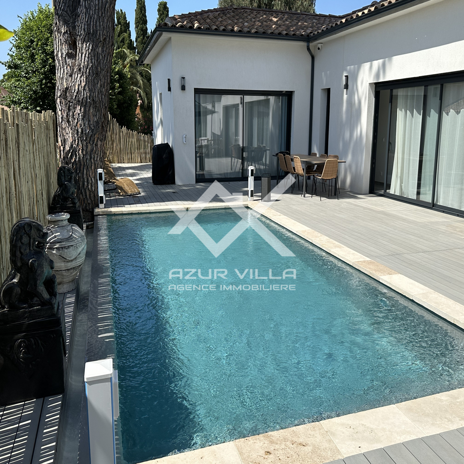 Piscine sécurisée avec protection périmétrique par faisceau infrarouge.