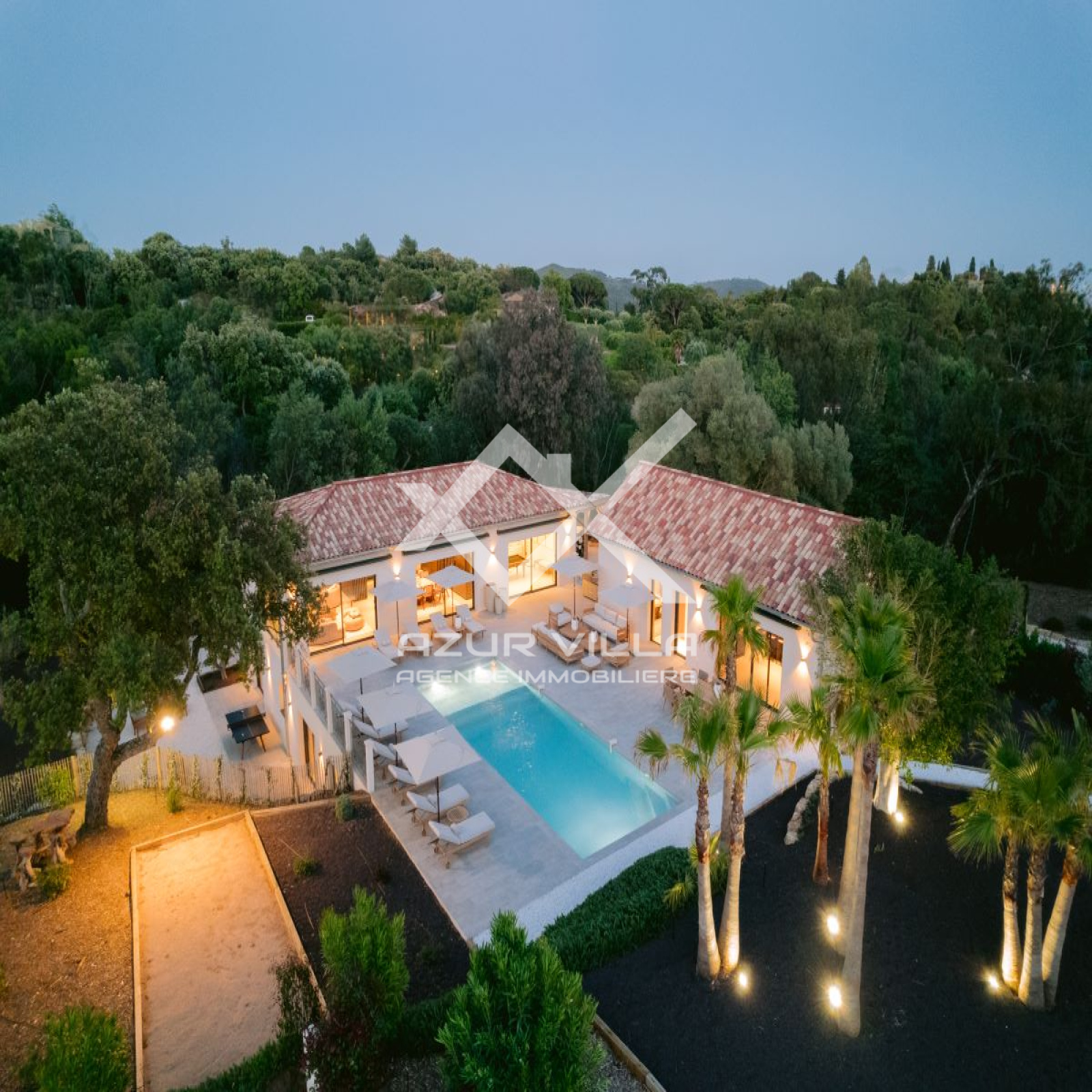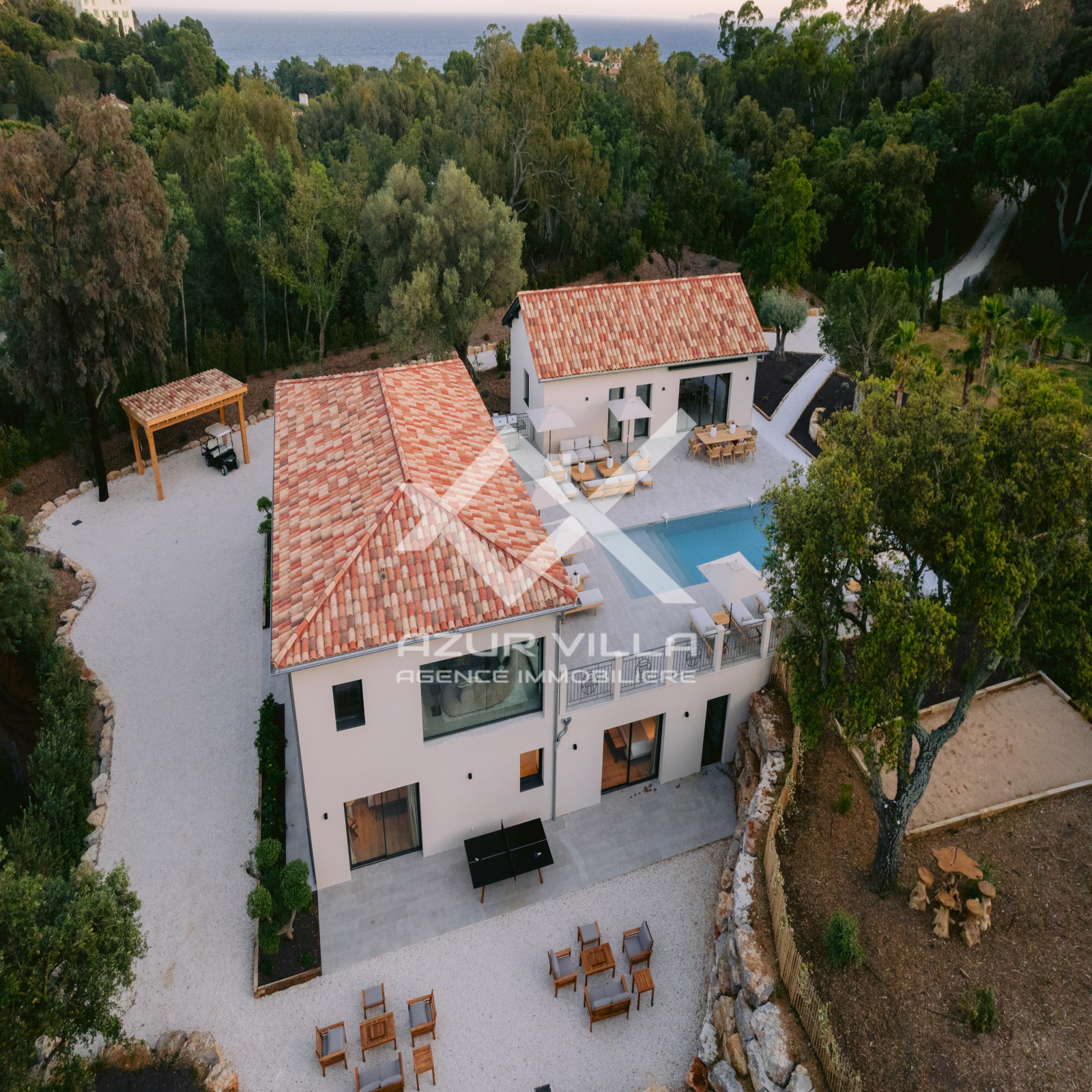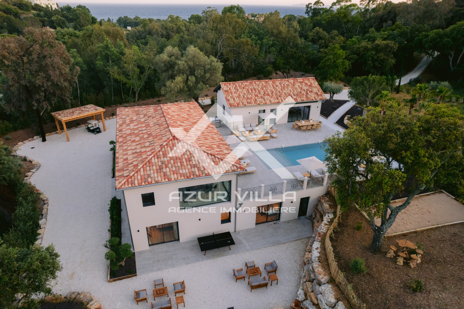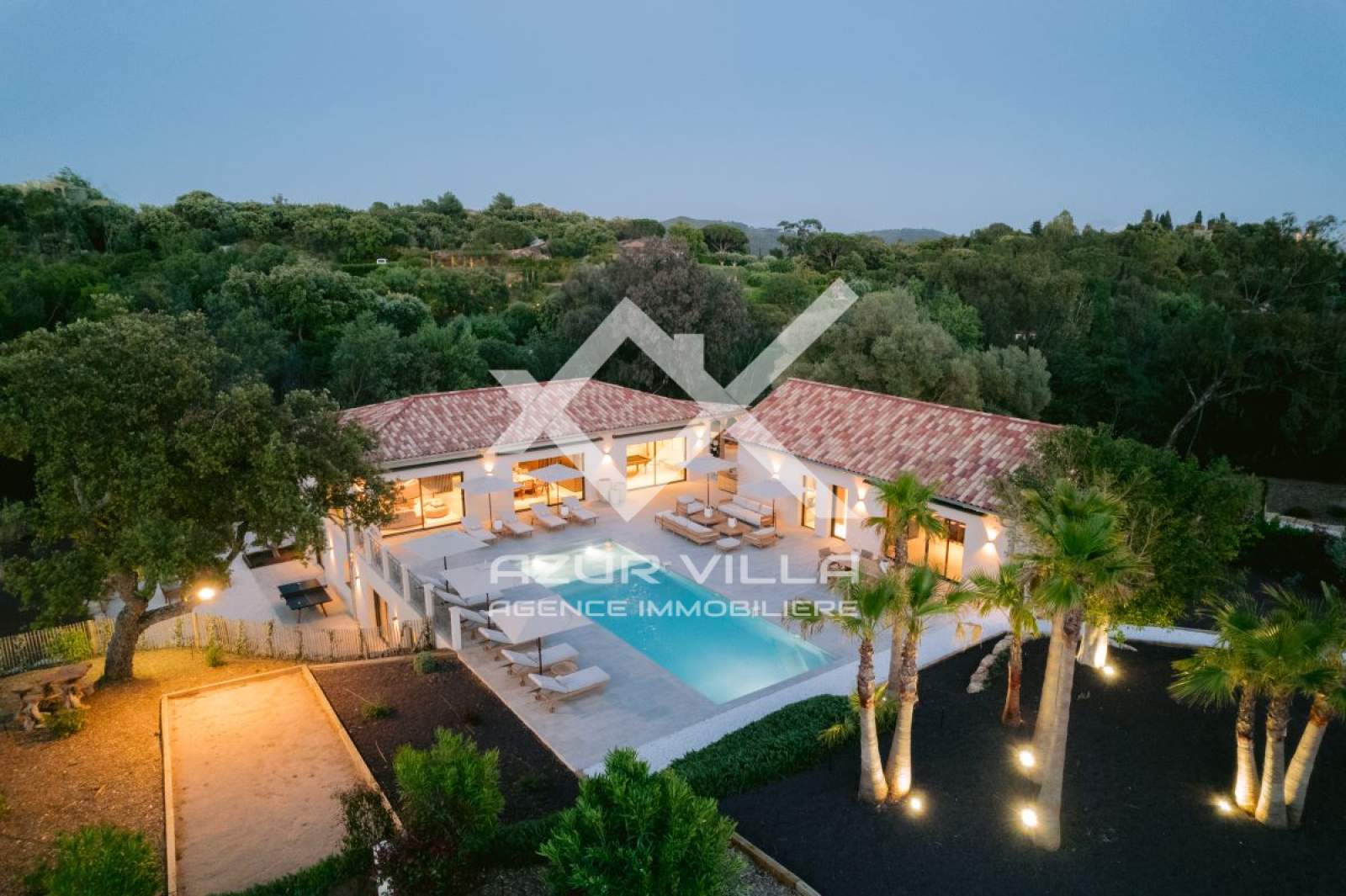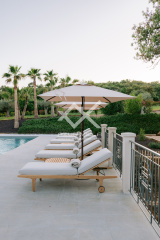D’une superficie totale de 430 m² composée de 5 chambres et 5 salles de bain (occupation jusqu’à 10 personnes) avec vue sur le parc privé du Domaine, piscine privative chauffée, pool house, salle de sport, salle de massage, vaste jardin privati