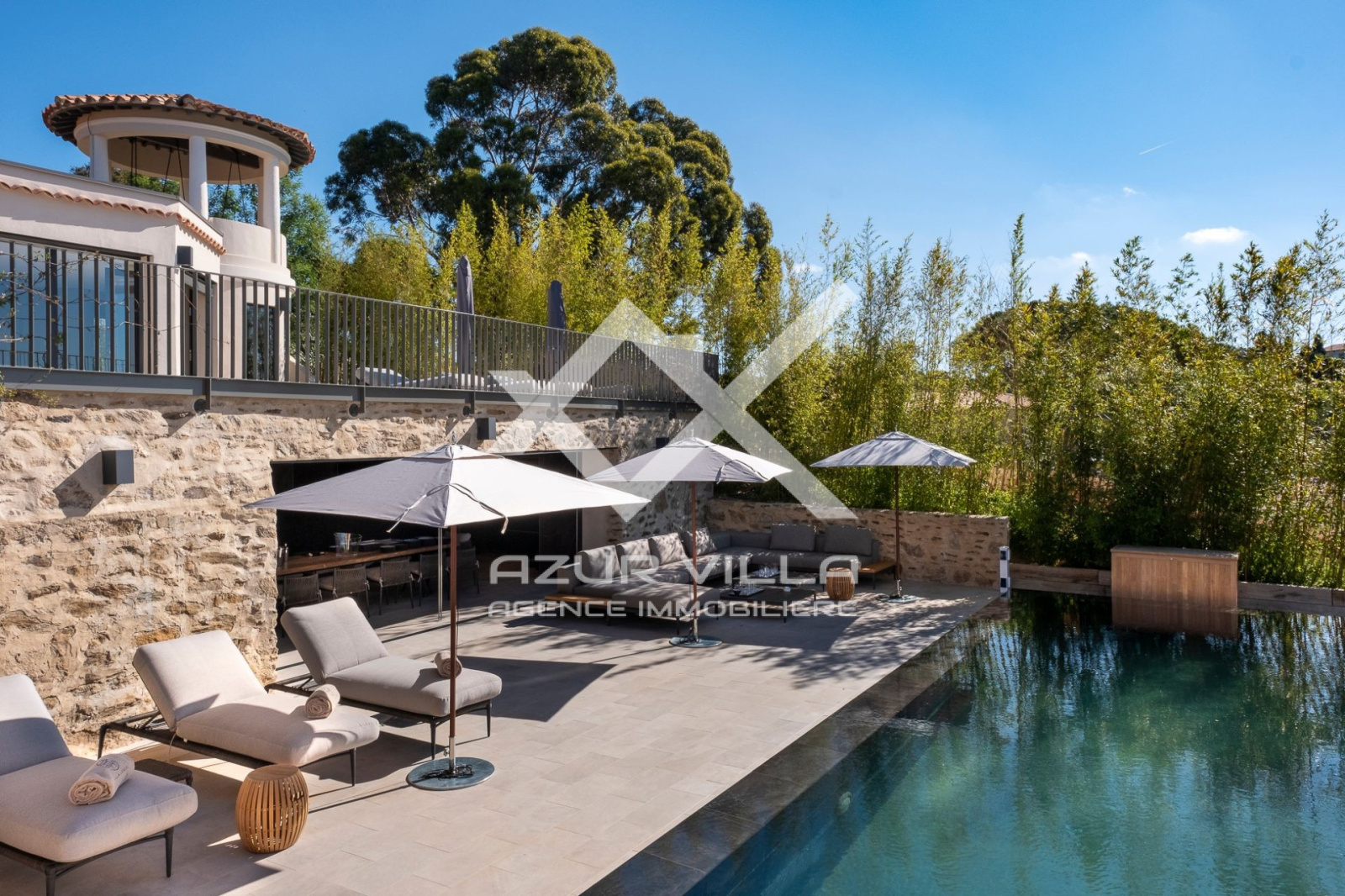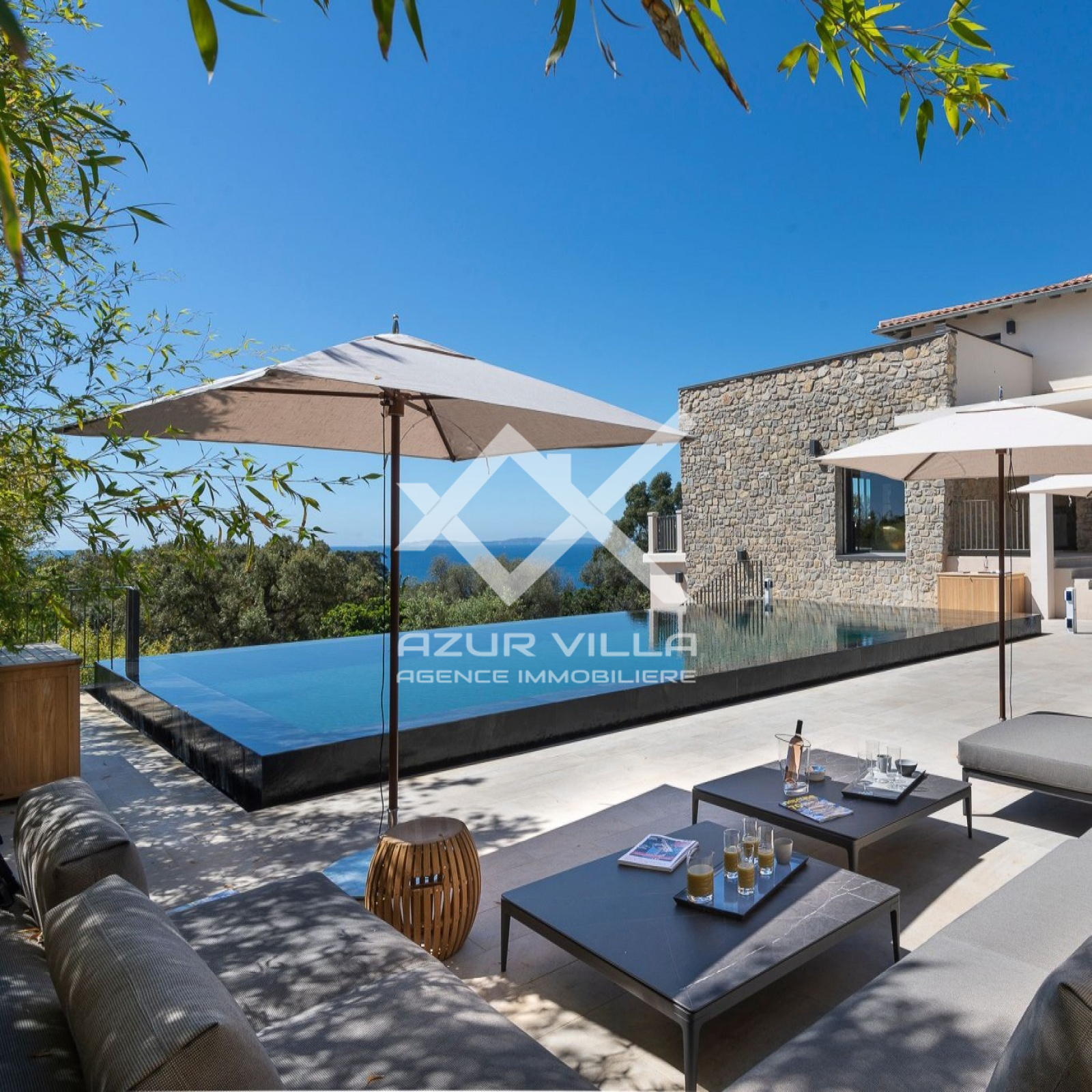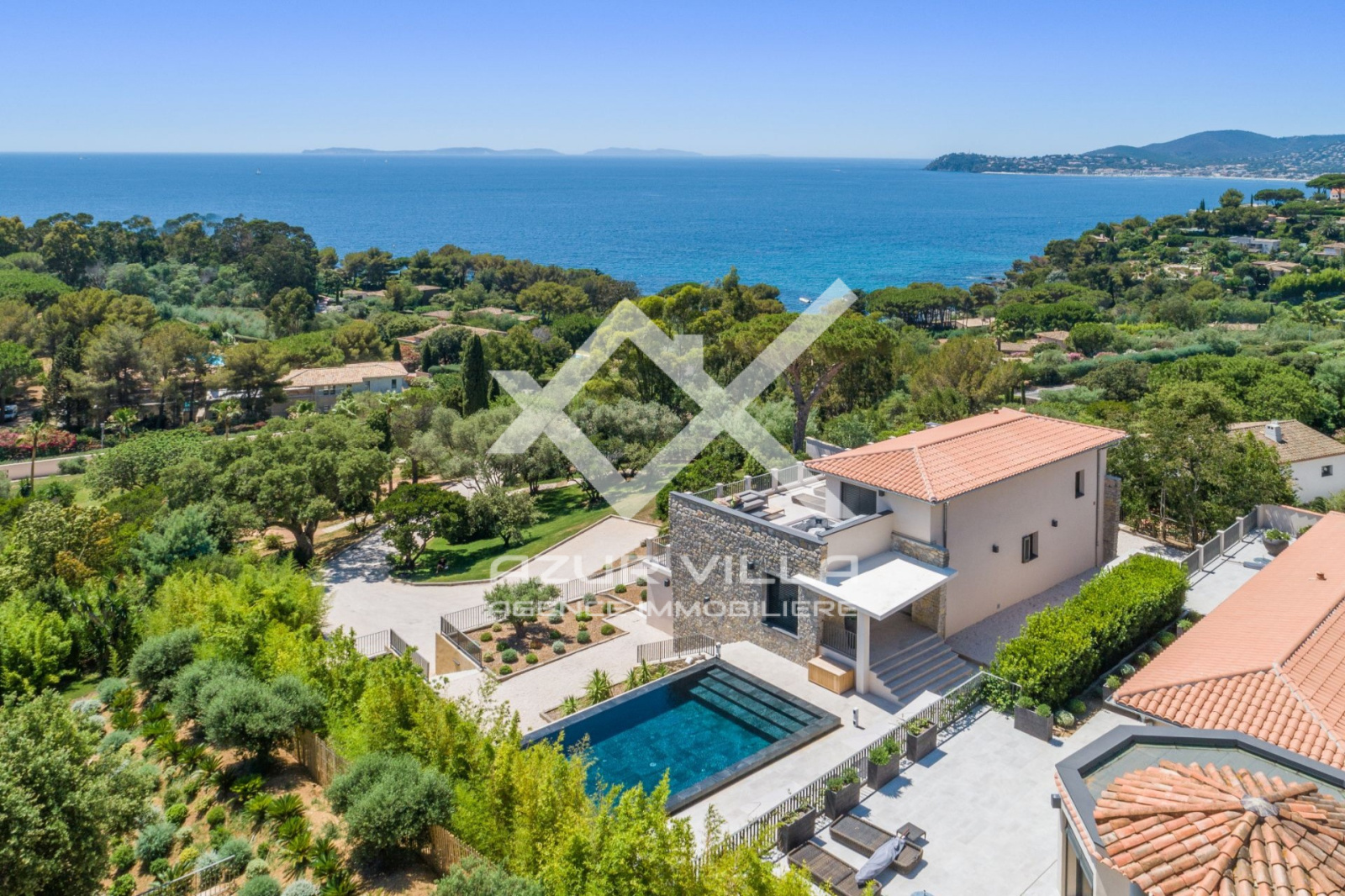Luxueuse villa de haut standing, de 390 m², dans un domaine prestigieux et unique, composé de plusieurs structures, avec une vue mer panoramique exceptionnelle.