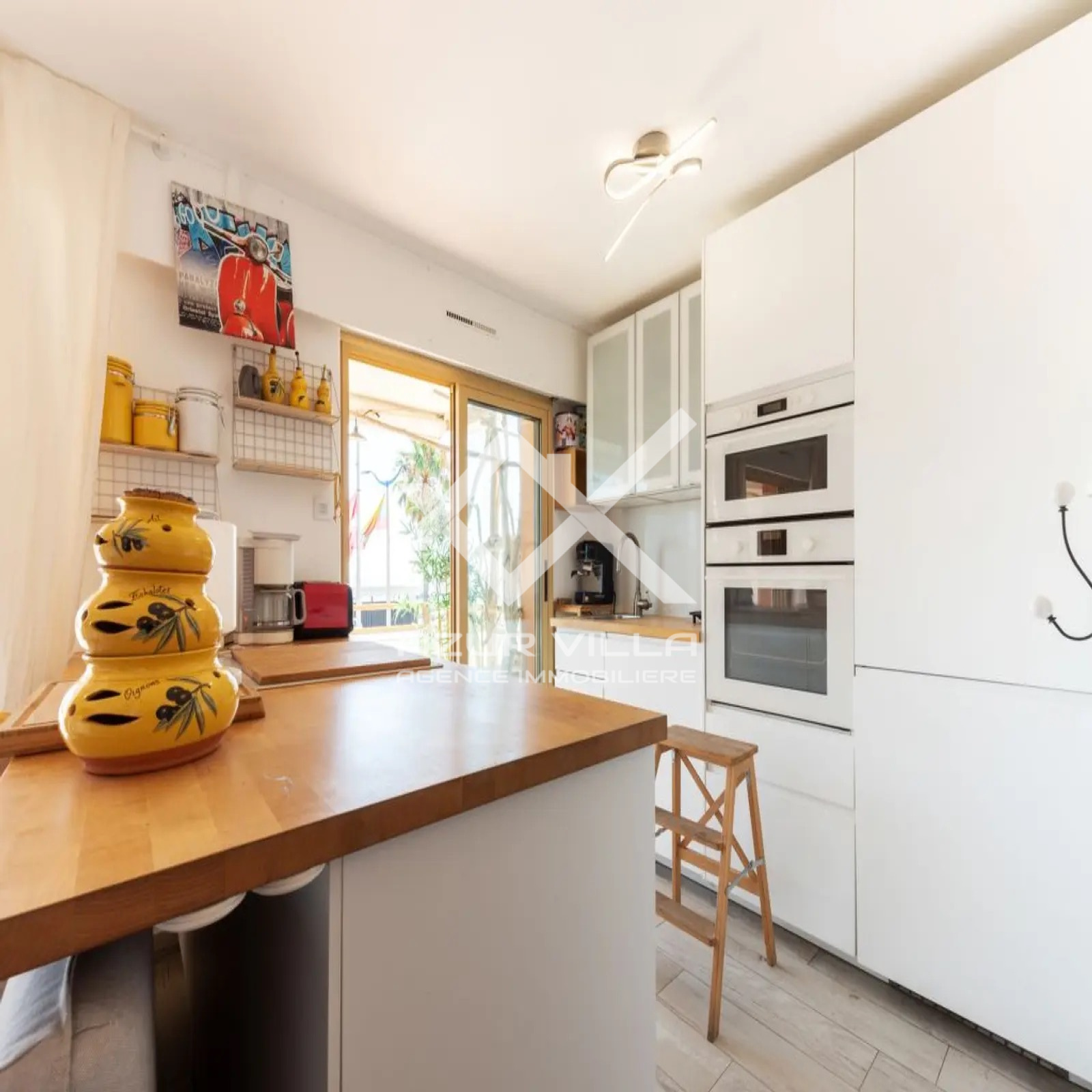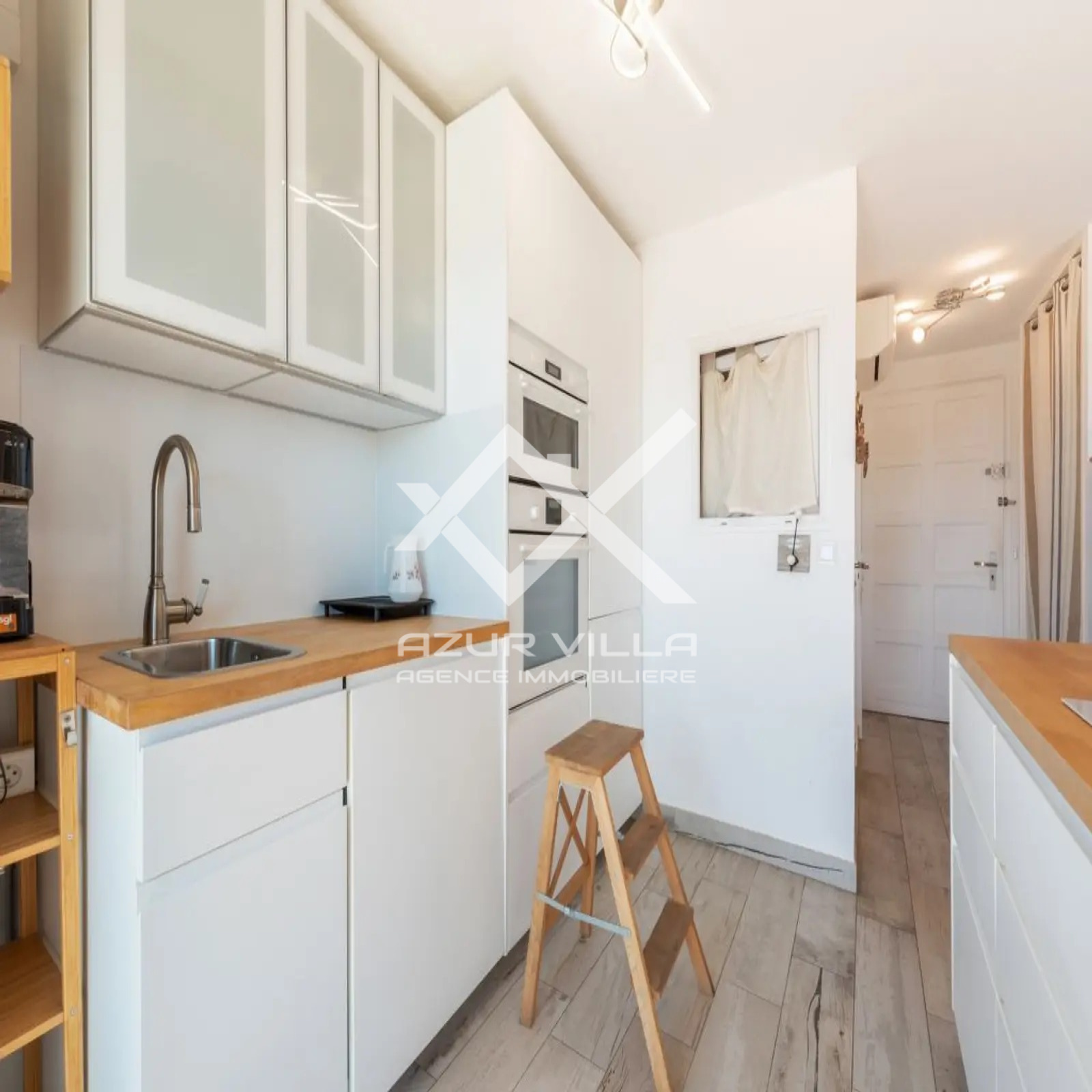 Joli séjour, lumineux avec une cuisine américaine équipée. Belle salle de douche - WC séparé et une magnifique terrasse avec sa vue mer exceptionnelle.