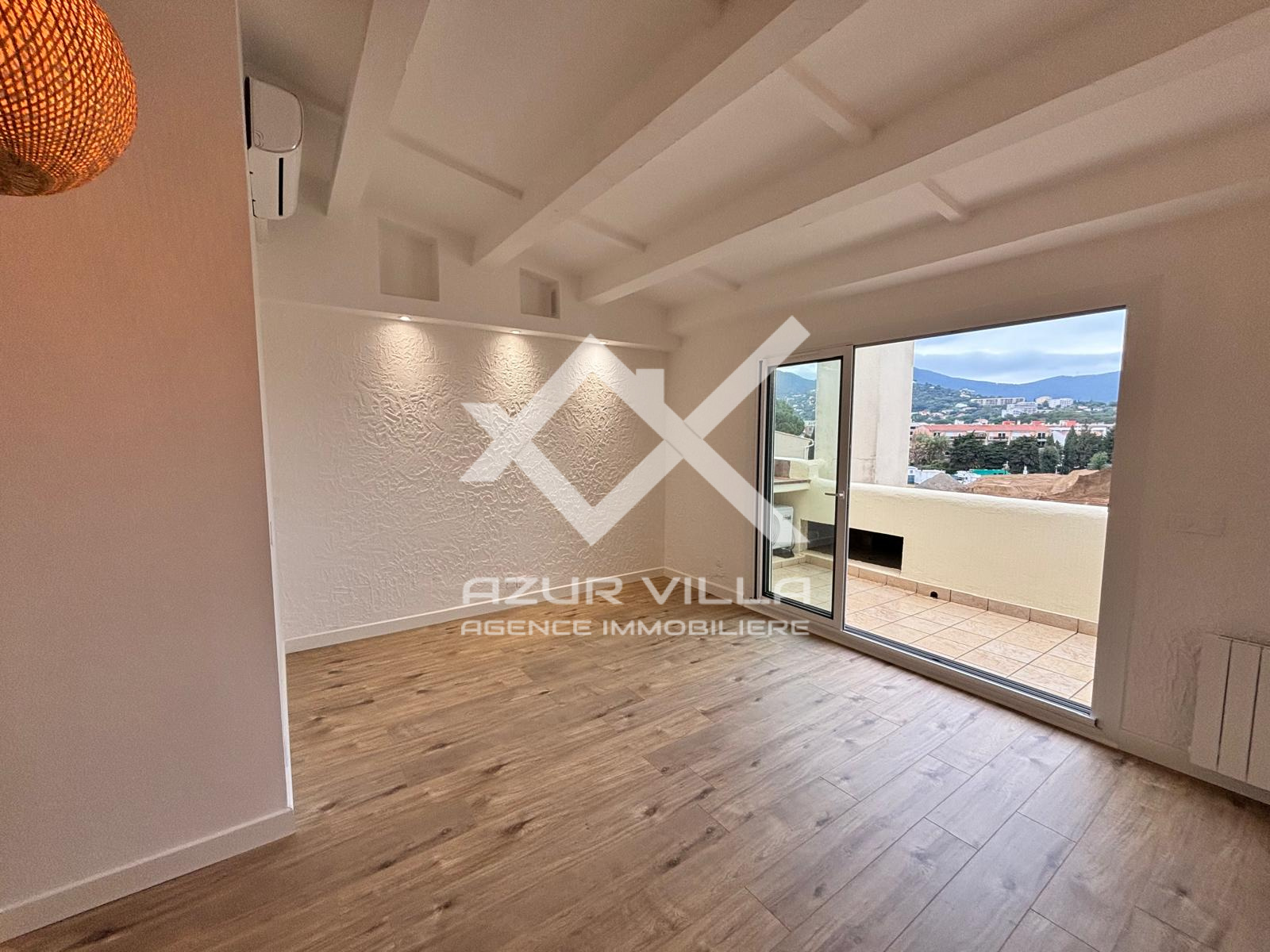 Azur Villa immobilier vous propose ce superbe T2 de 46m², entièrement et joliment rénové, situé en centre-ville dans une résidence sécurisée et proche de tous commerces et des plages.