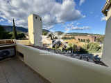 Terrasse sans vis à vis avec vue sur les collines et la ville, espace barbecue.