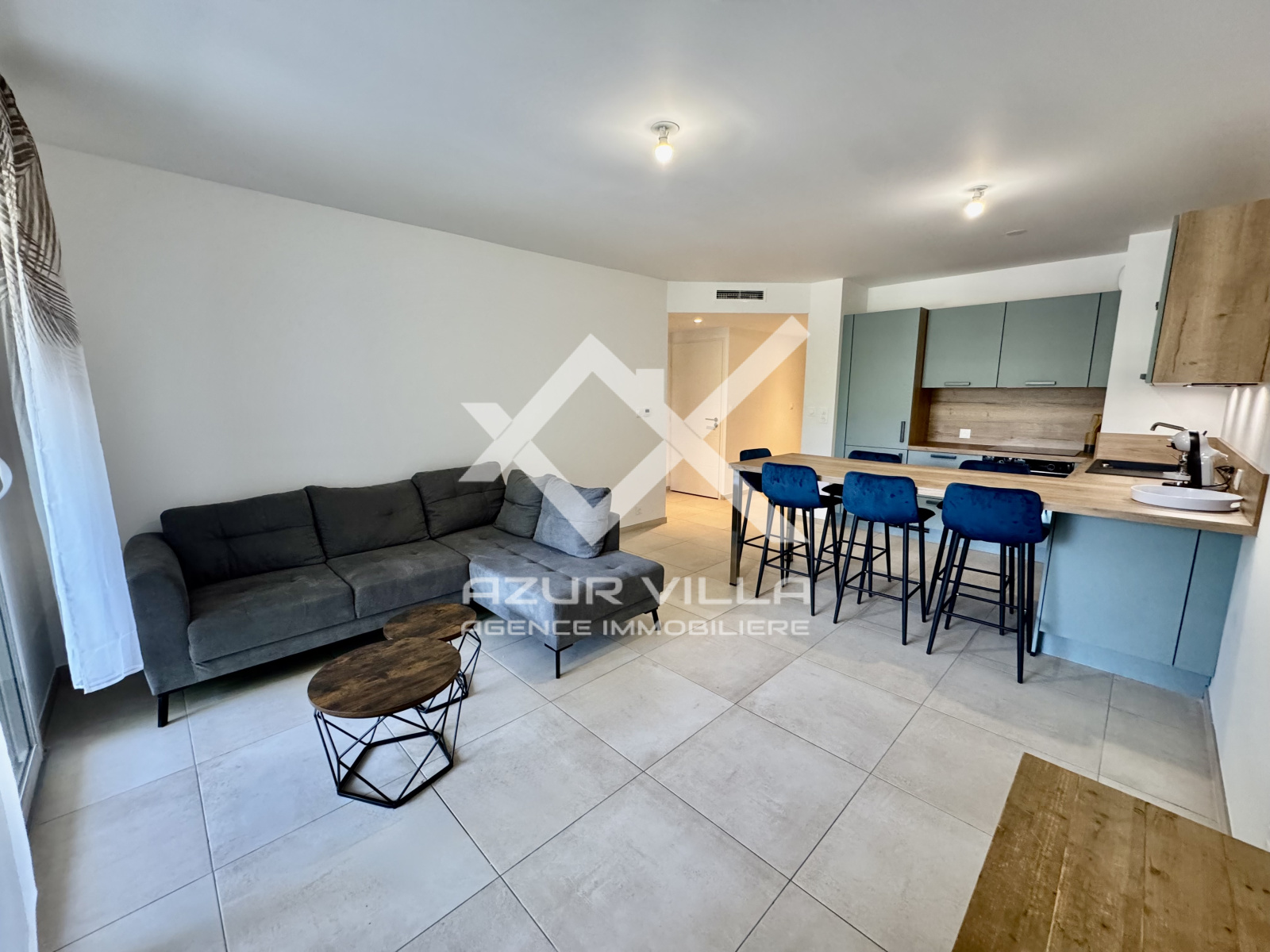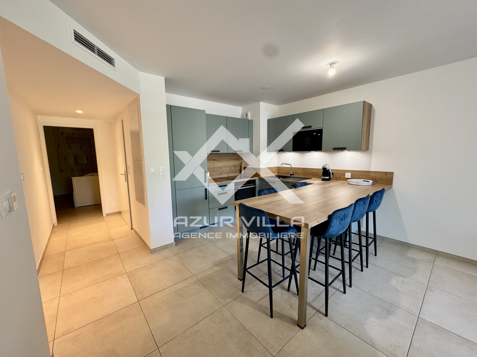 Avec une surface de 60 m², cet appartement lumineux comprend 3 pièces, dont 2 chambres, et une cuisine entièrement neuve et équipé