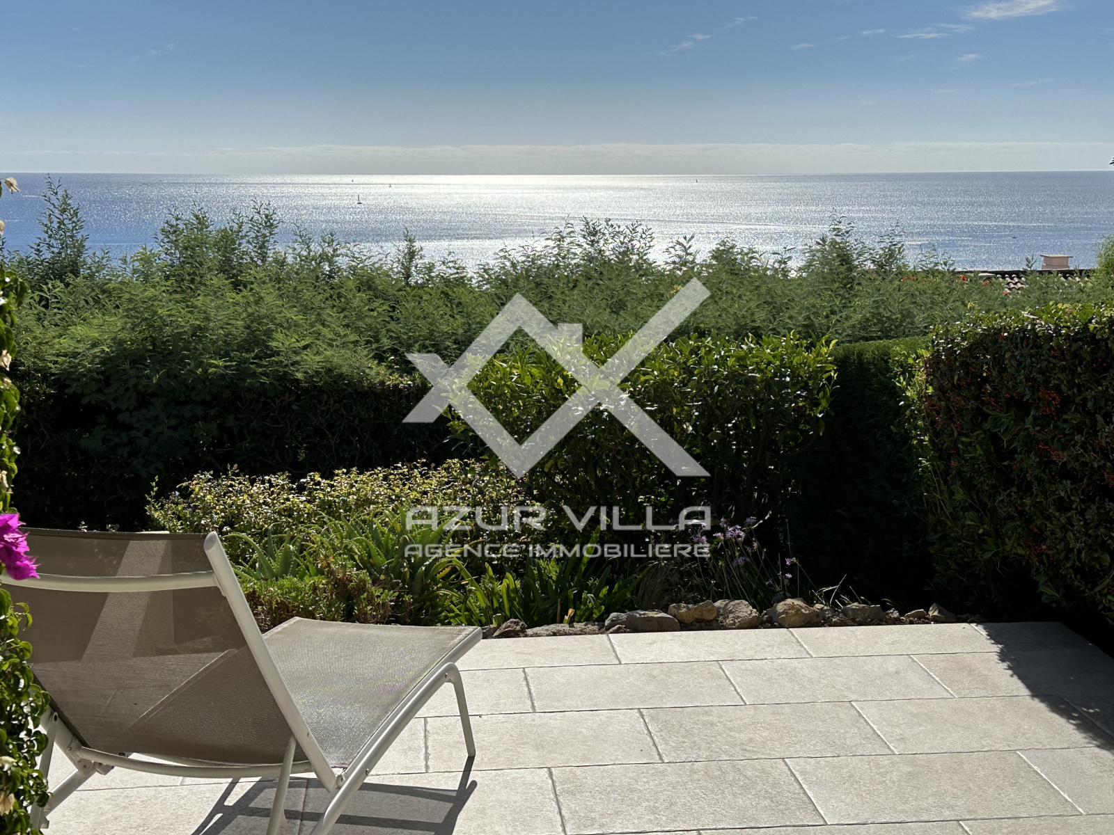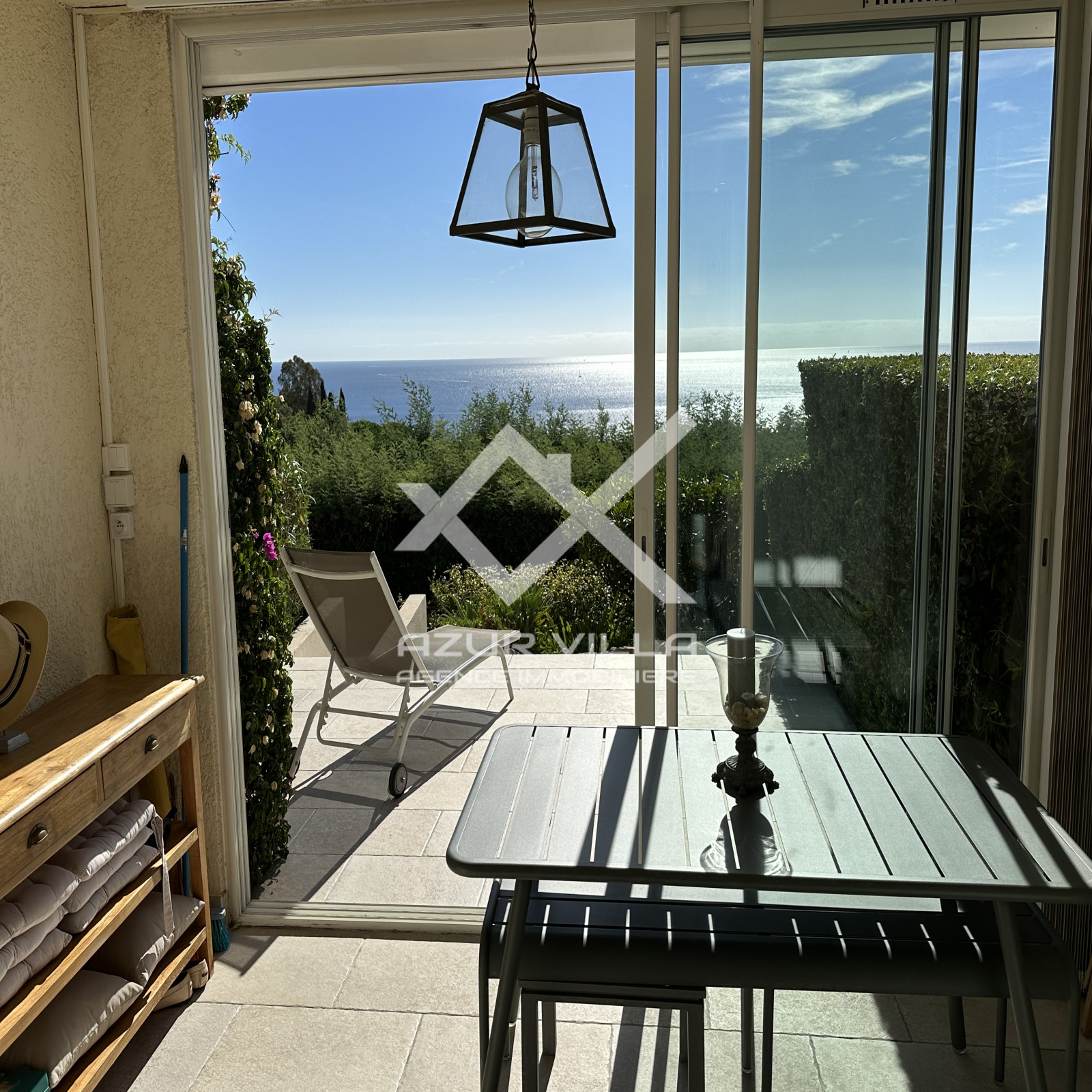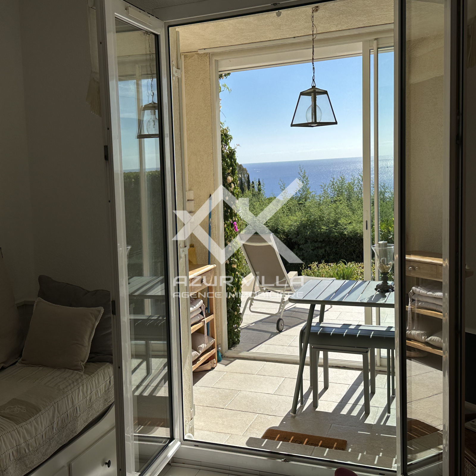 Une grande pièce à vivre de 21 m² donnant sur une loggia ouverte sur une terrasse offrant une splendide vue mer.