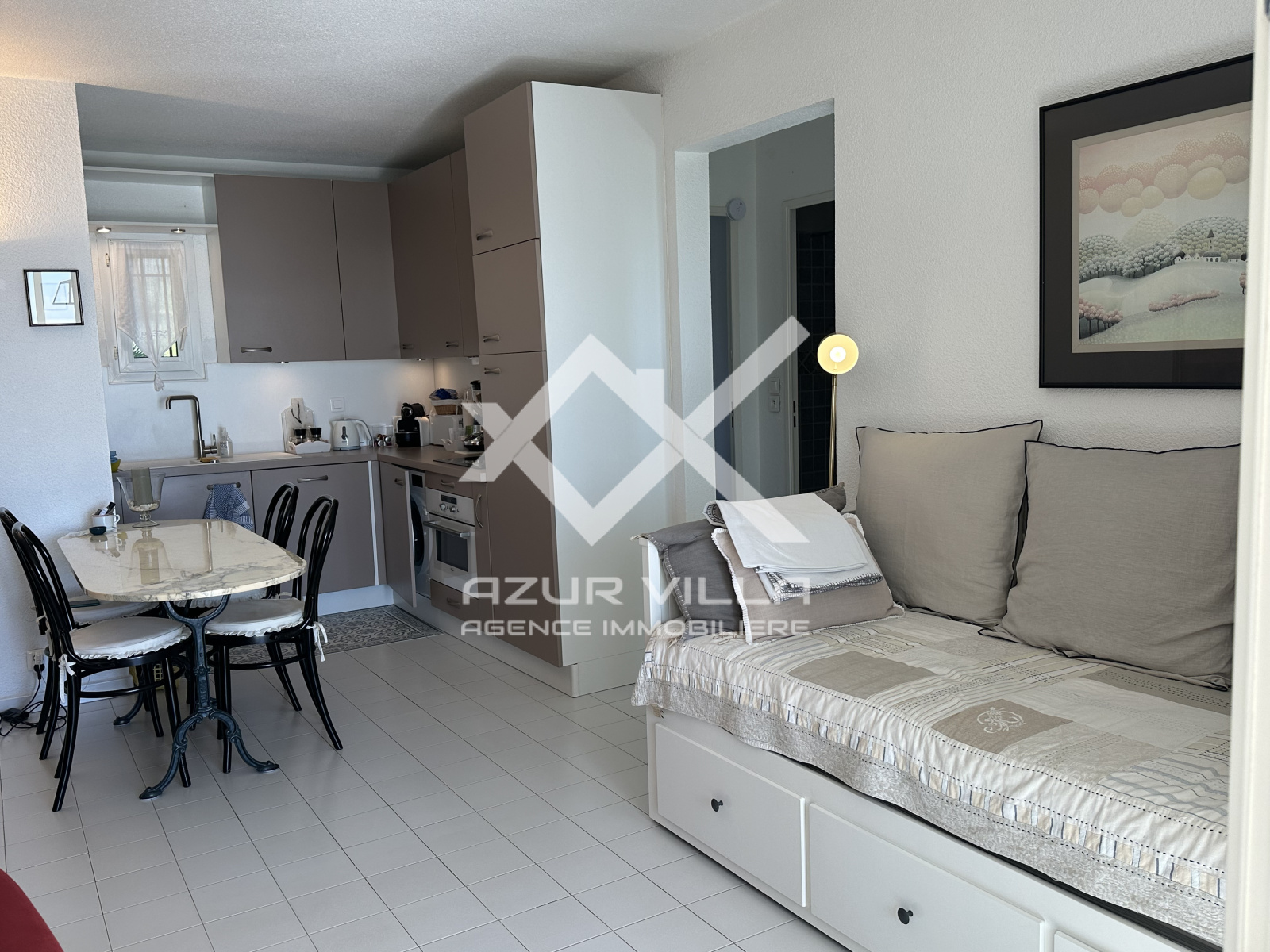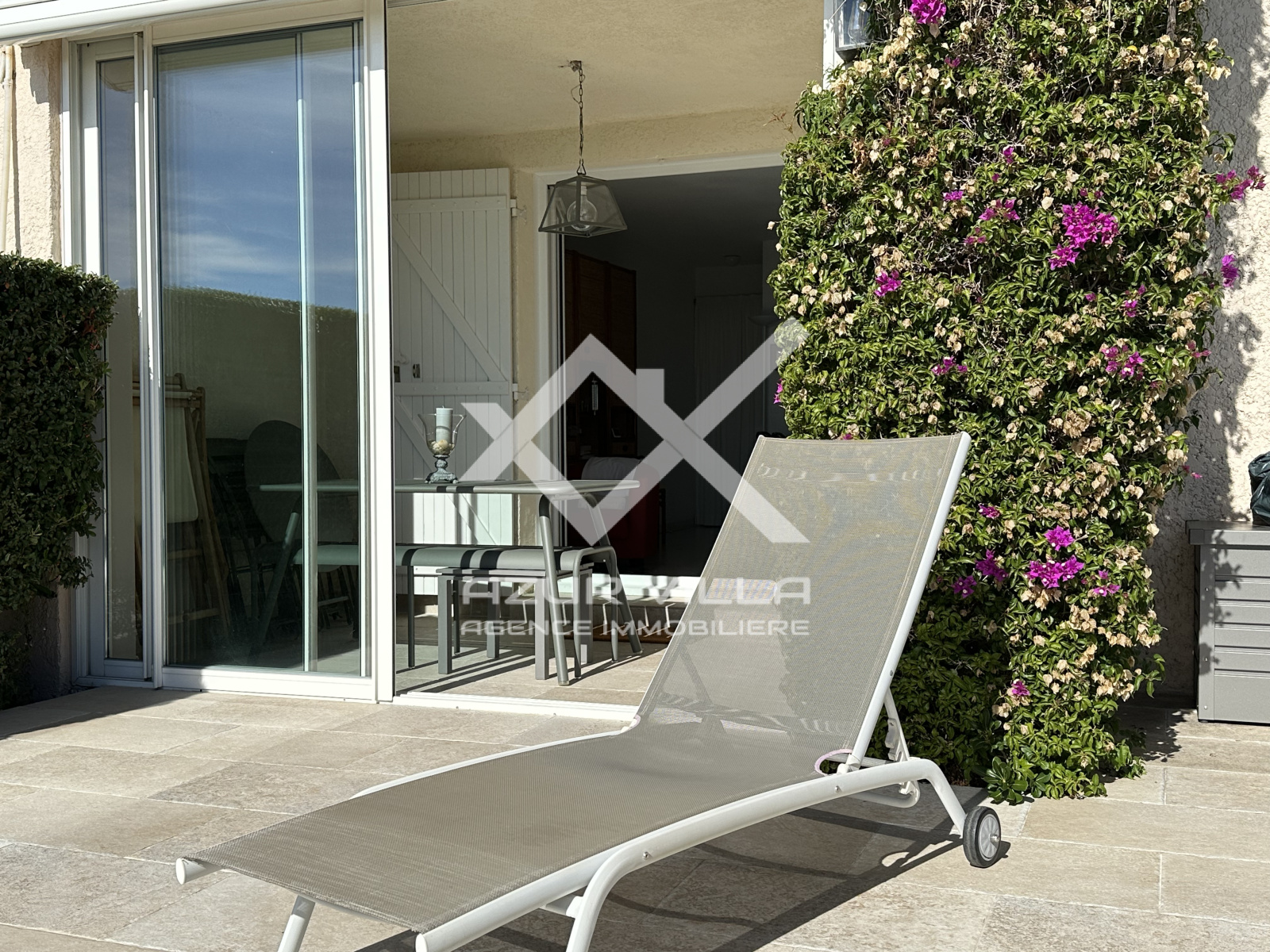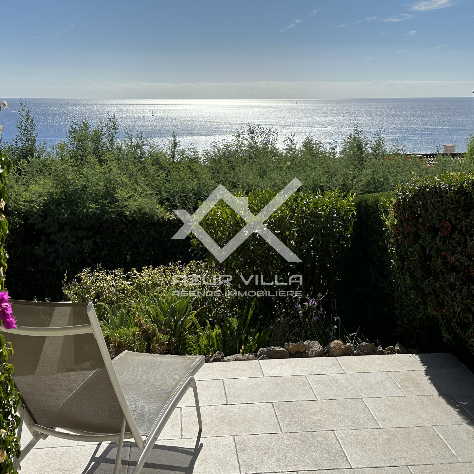 Une grande pièce à vivre de 21 m² donnant sur une loggia ouverte sur une terrasse offrant une splendide vue mer.