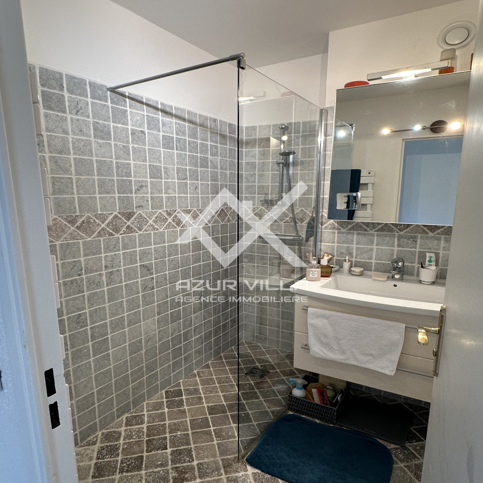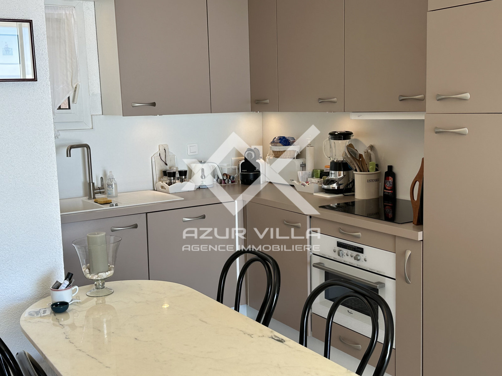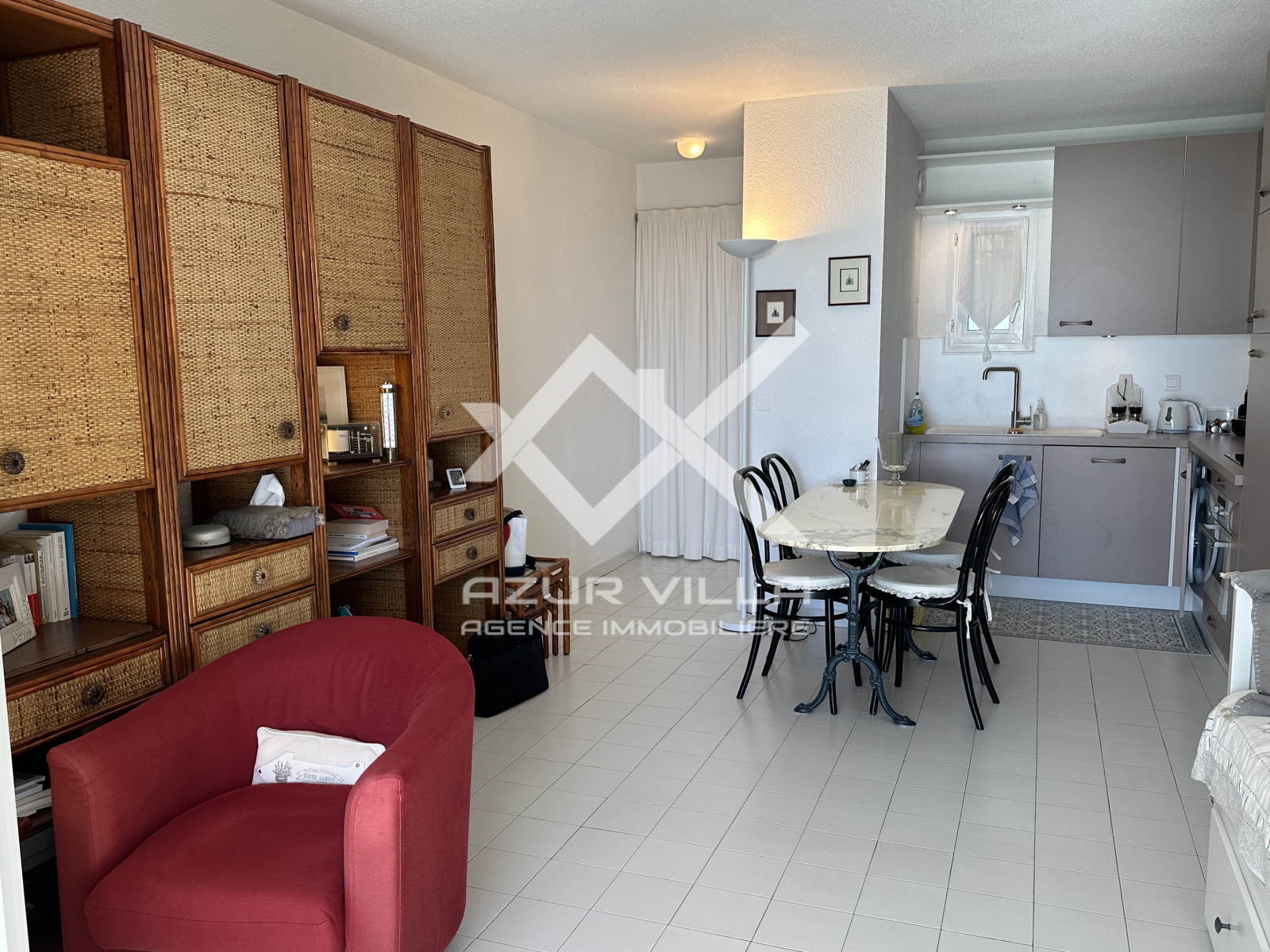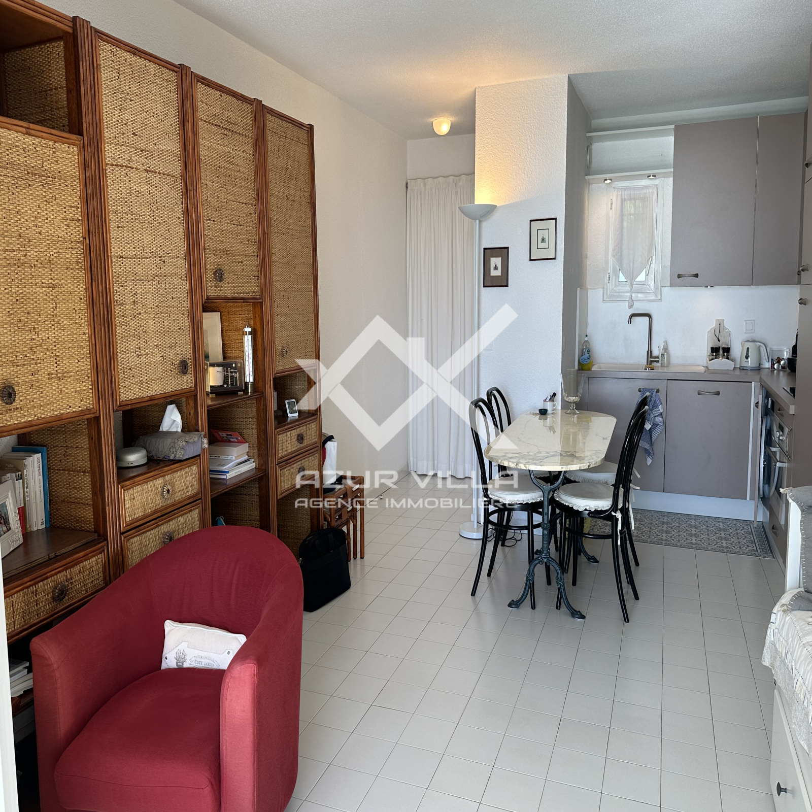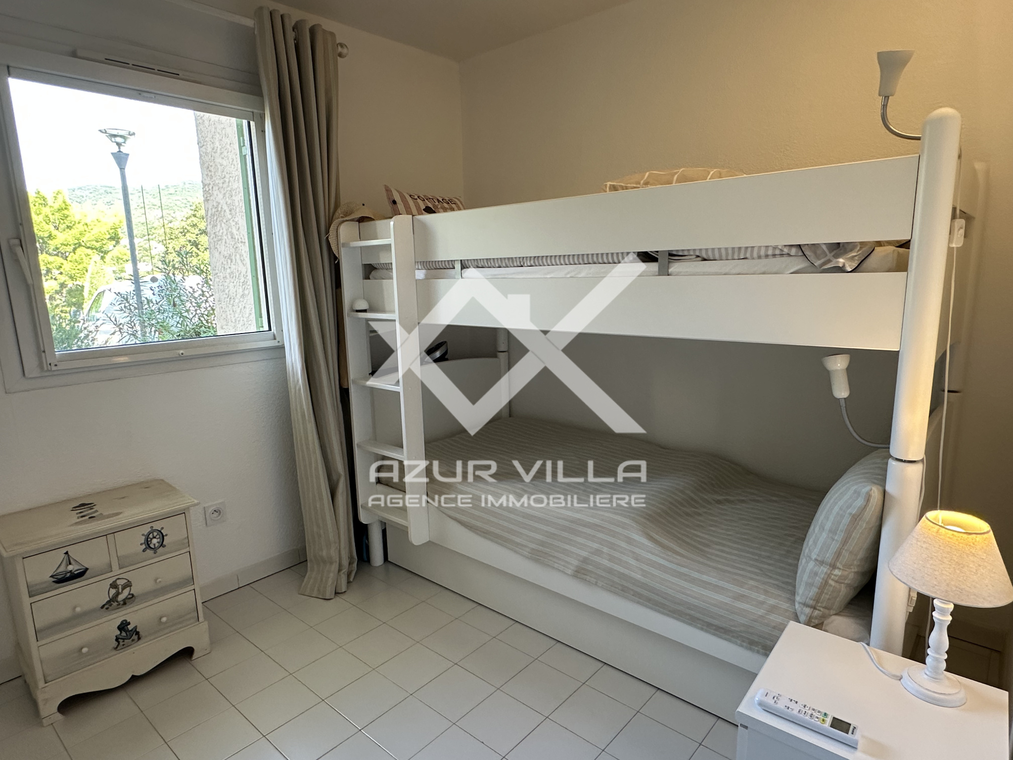 Deux chambres climatisées, avec dressing, dont une avec vue mer, une salle de douches, un WC séparé - cuisne américaine équipée.