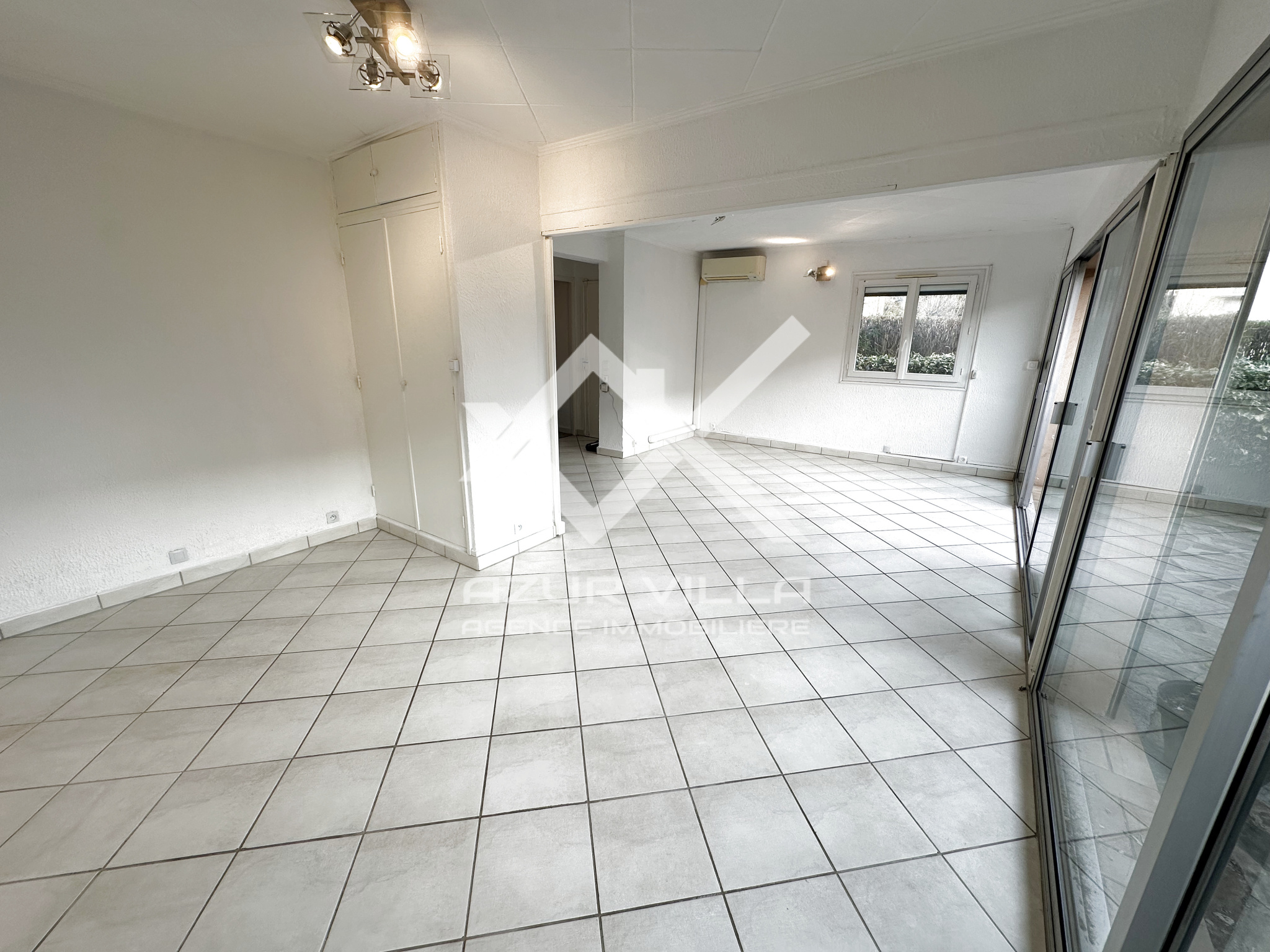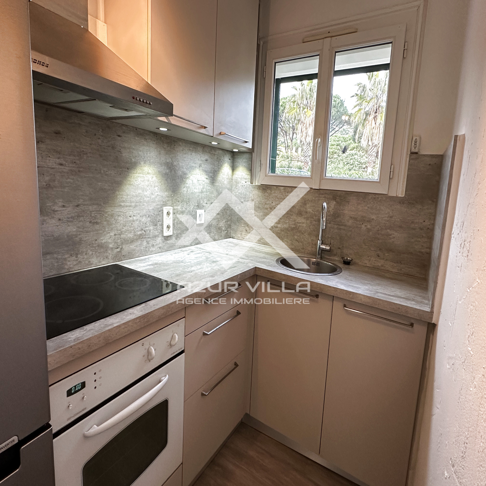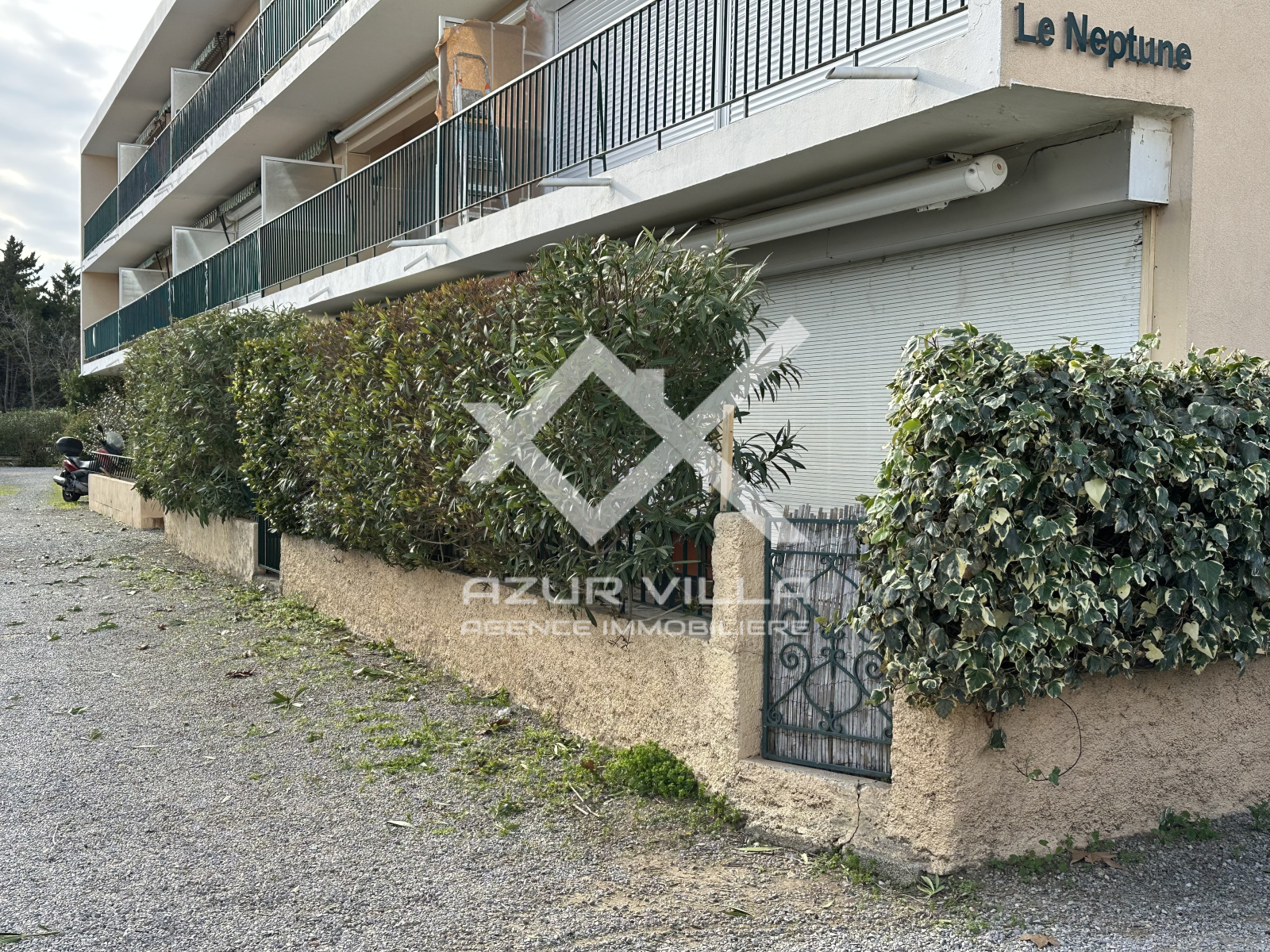 Secteur des parcs de Cavalaire, Rez de jardin de 51 m² avec place de parking. Climatisation réversible dans la chambre et le salon. Une chambre, une salle de douche, WC séparé. Possibilité de faire une seconde chambre. Plage et commerces à 50m
