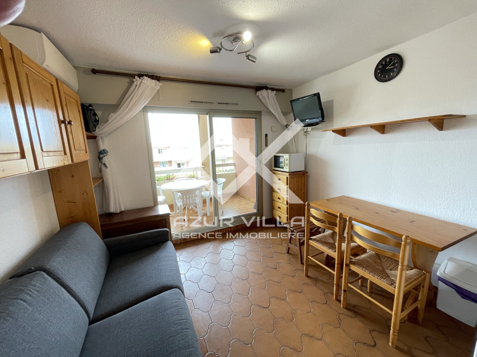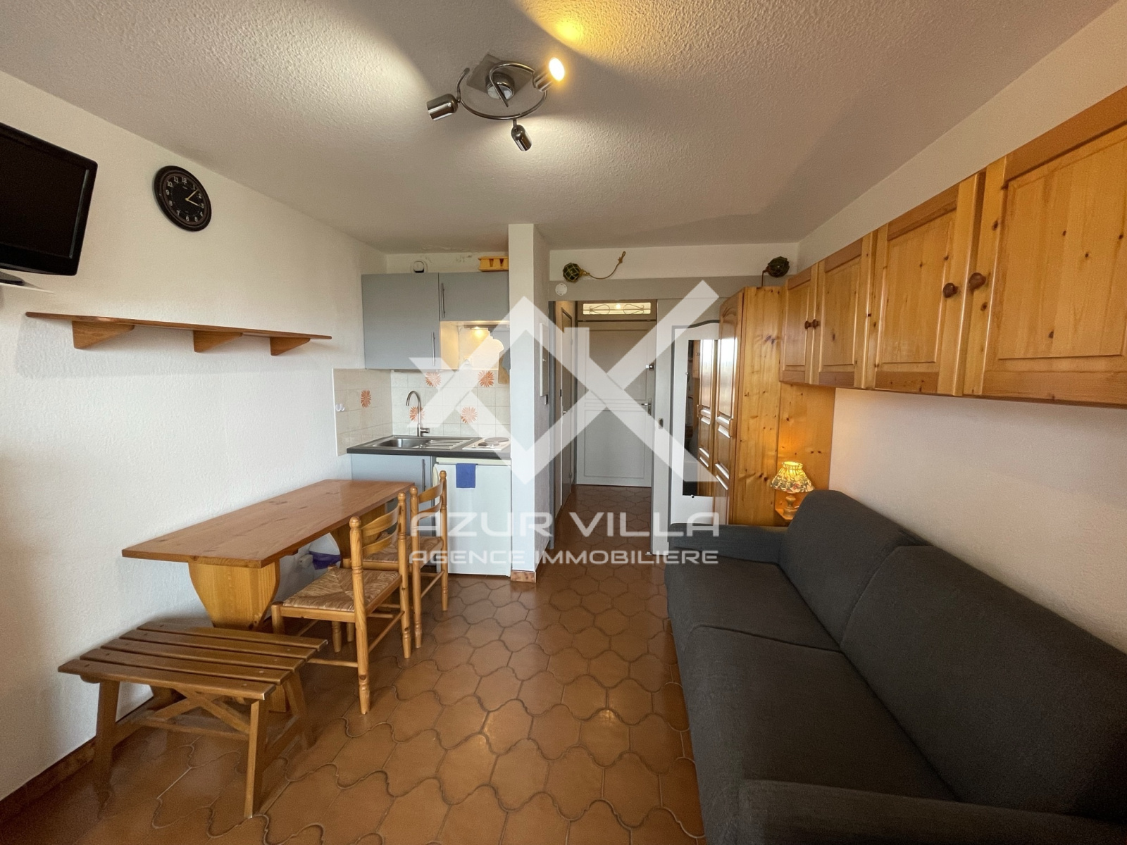 Jolie studio climatisé de 17m2 avec une terrasse de 6m2 à deux pas de la plus belle plage de Cavalaire. Il est composé d'une pièce à vivre avec une kitchenette, un convertible et d'une salle de douche avec WC.
