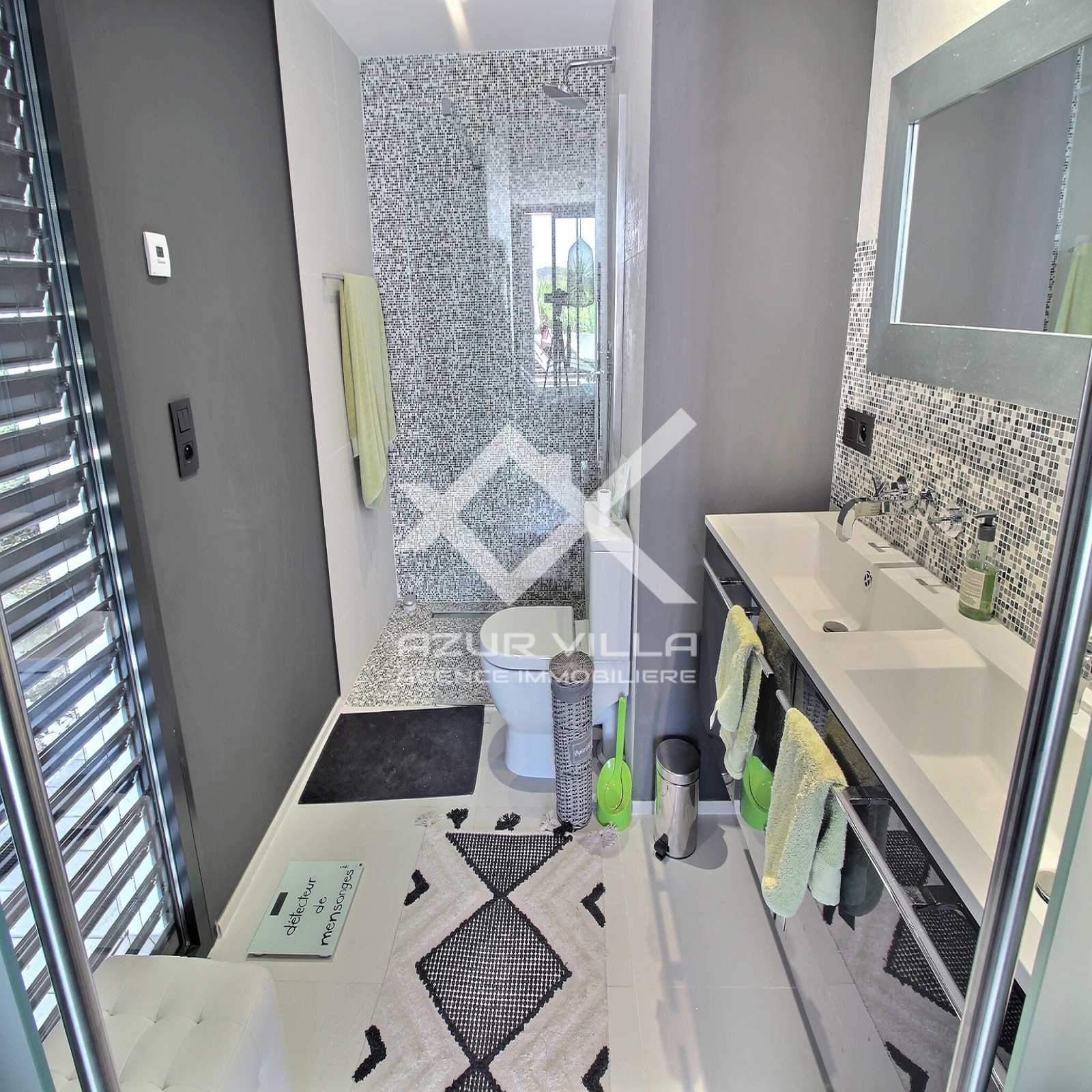 Elle est d'une superficie de 170 m2 sur un terrain arboré de 850 m2, composée d'un hall d'entrée, séjour/ salle à manger/ cuisine ouverte toute équipée, une chambre de maître avec son dressing & salle de bain, 3 suites parentales avec salle de douche & bain, une chambre. Plusieurs terrasses avec des expositions différentes .